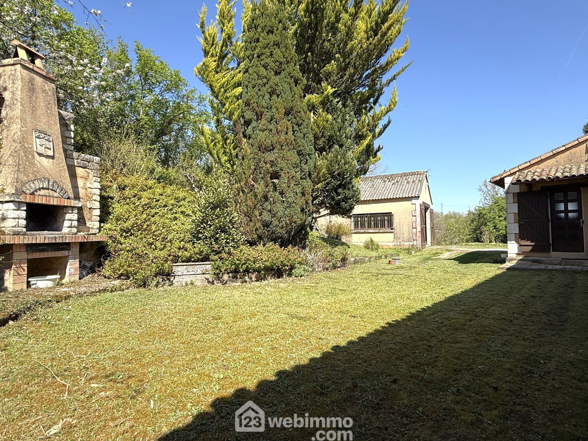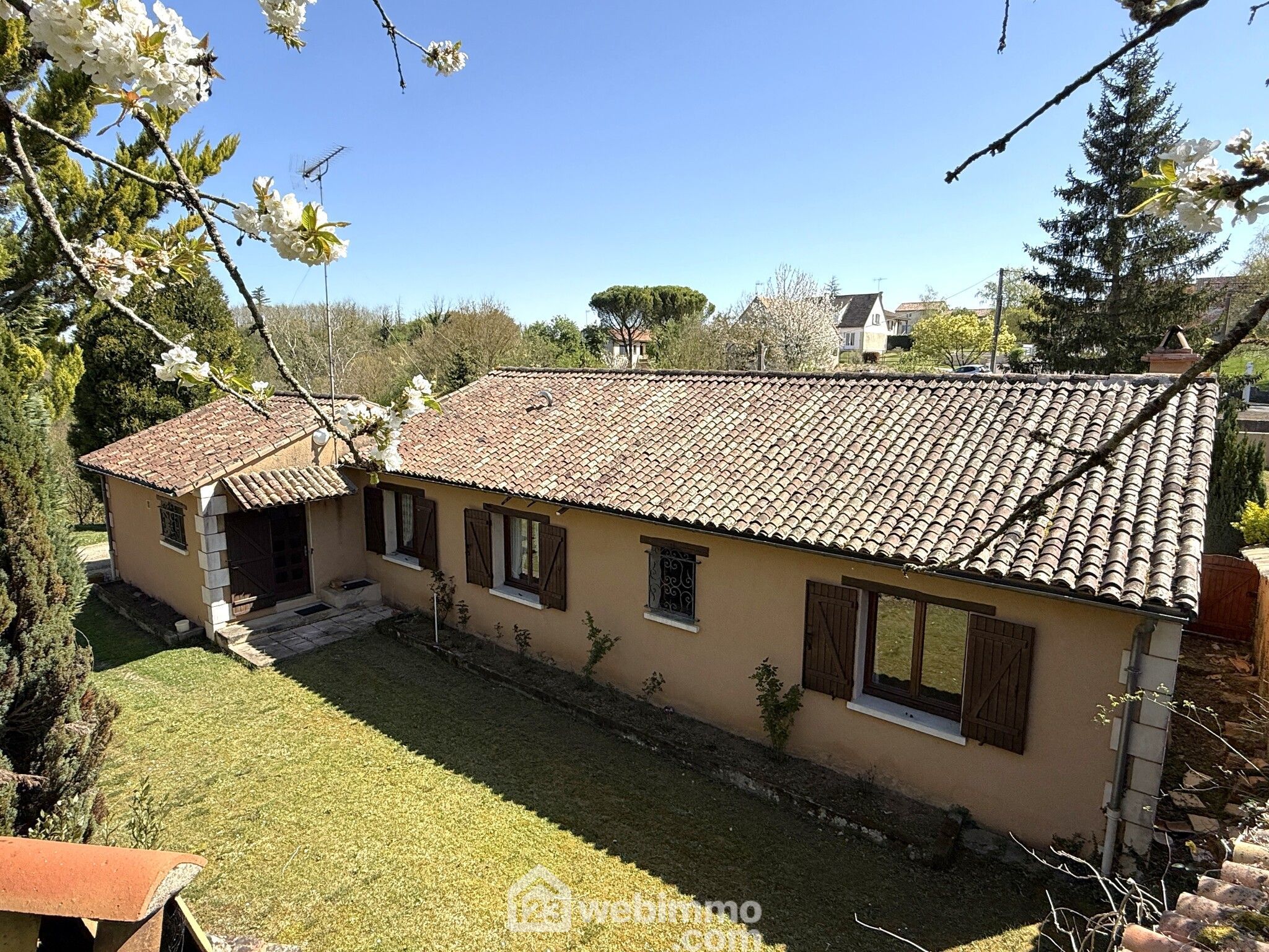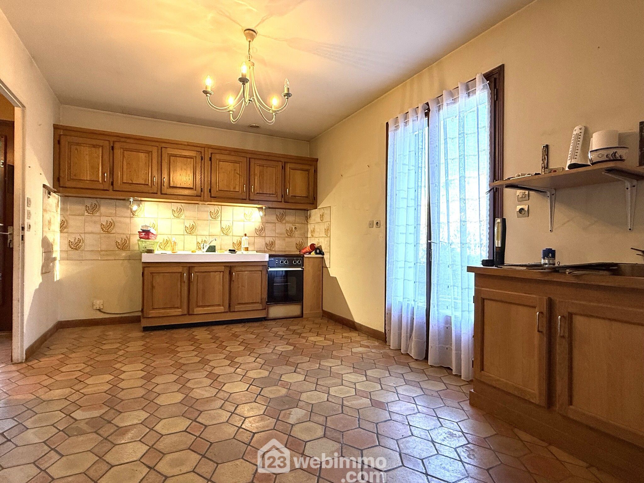 Pavillon de plain-pied, 102 m2 habitables, 4 pièces, 3 chambres, arrière cuisine / cuisine d'été, garage (70 m2), terrain de 1398 m2.