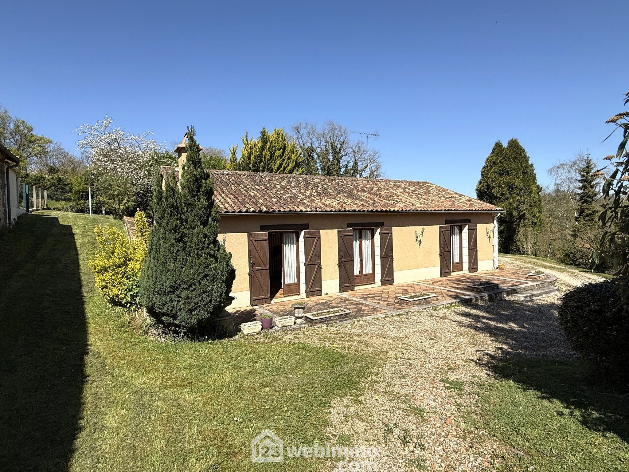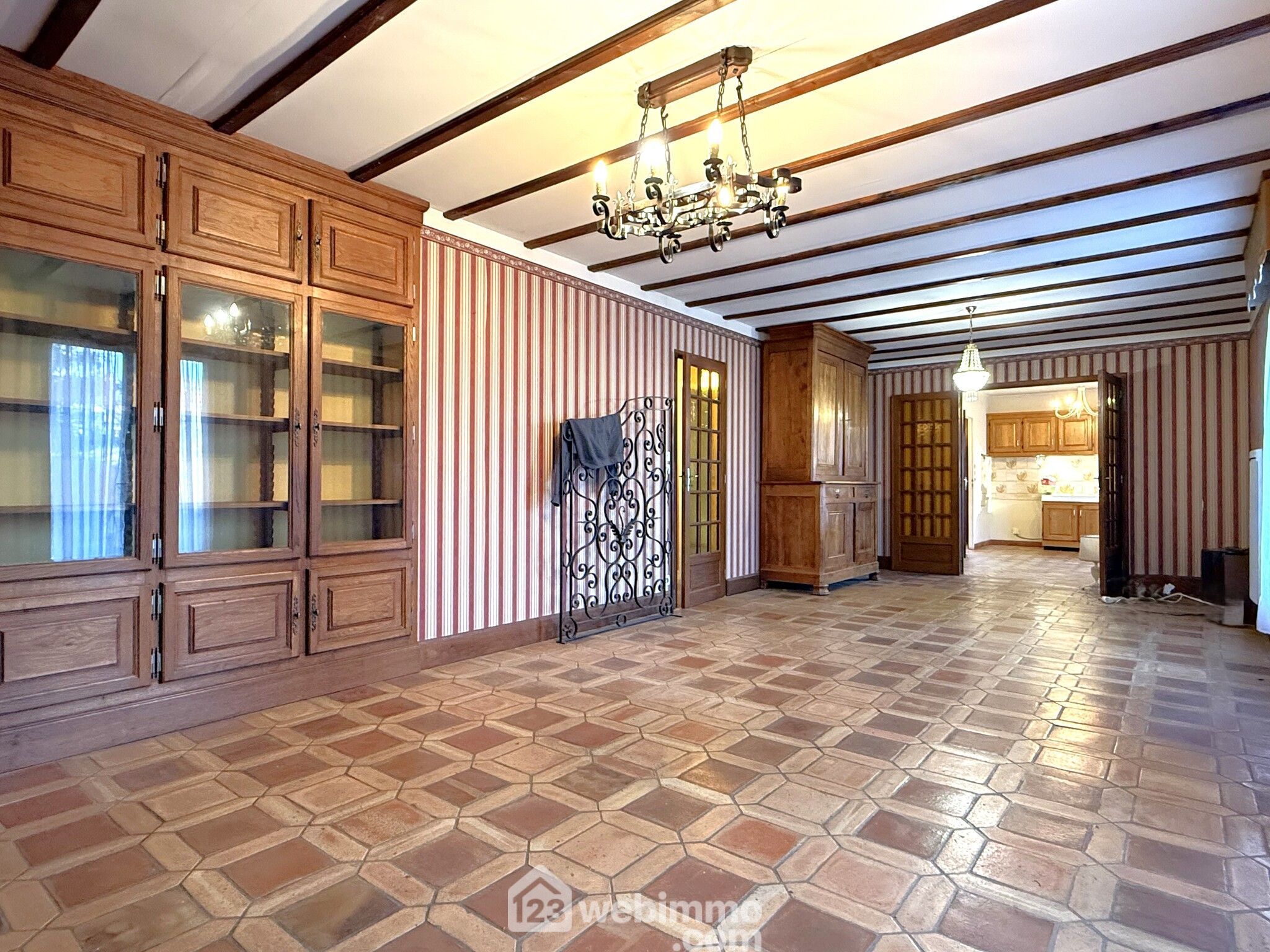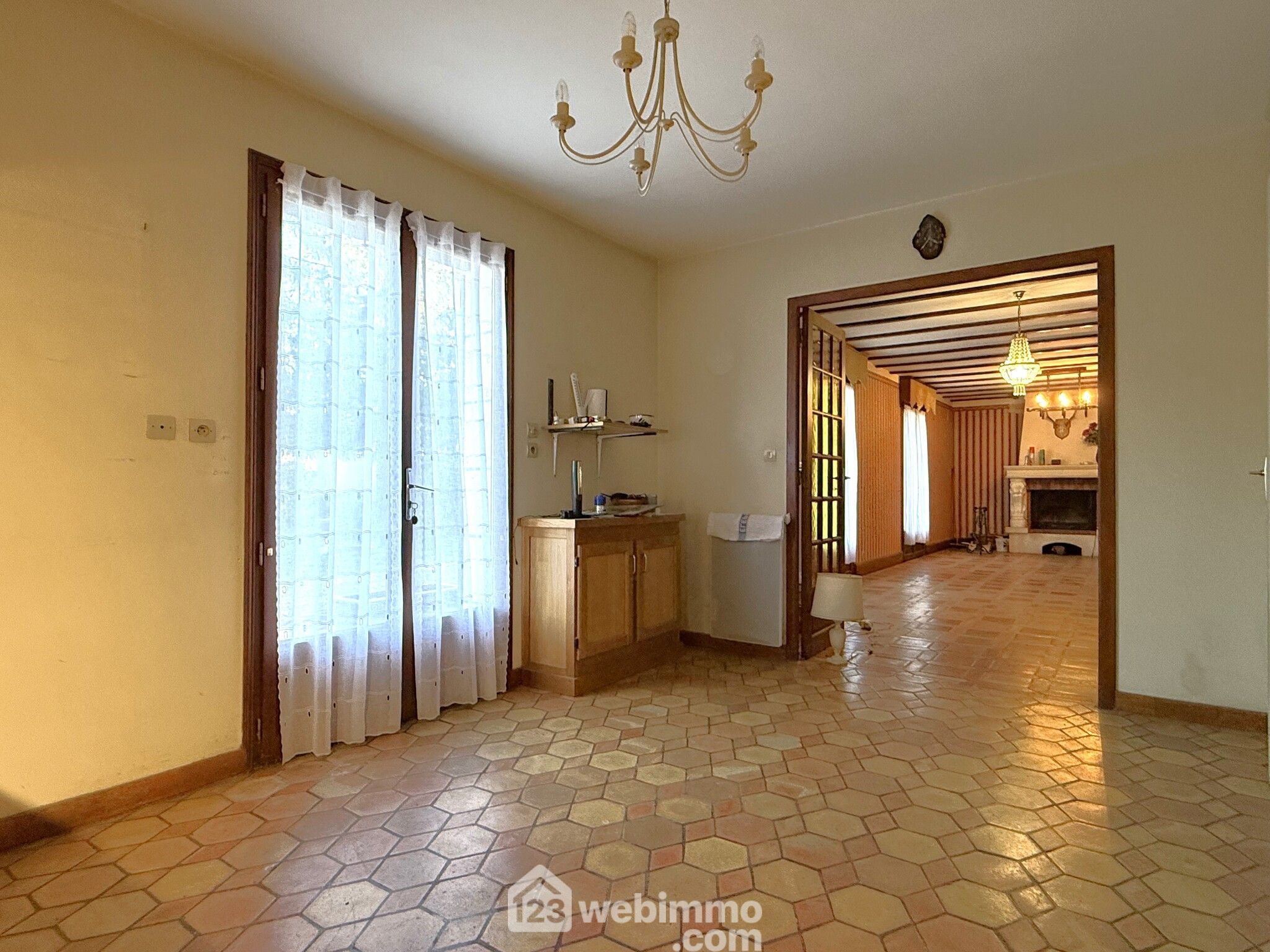 Pavillon de plain-pied, 102 m2 habitables, 4 pièces, 3 chambres, arrière cuisine / cuisine d'été, garage (70 m2), terrain de 1398 m2.