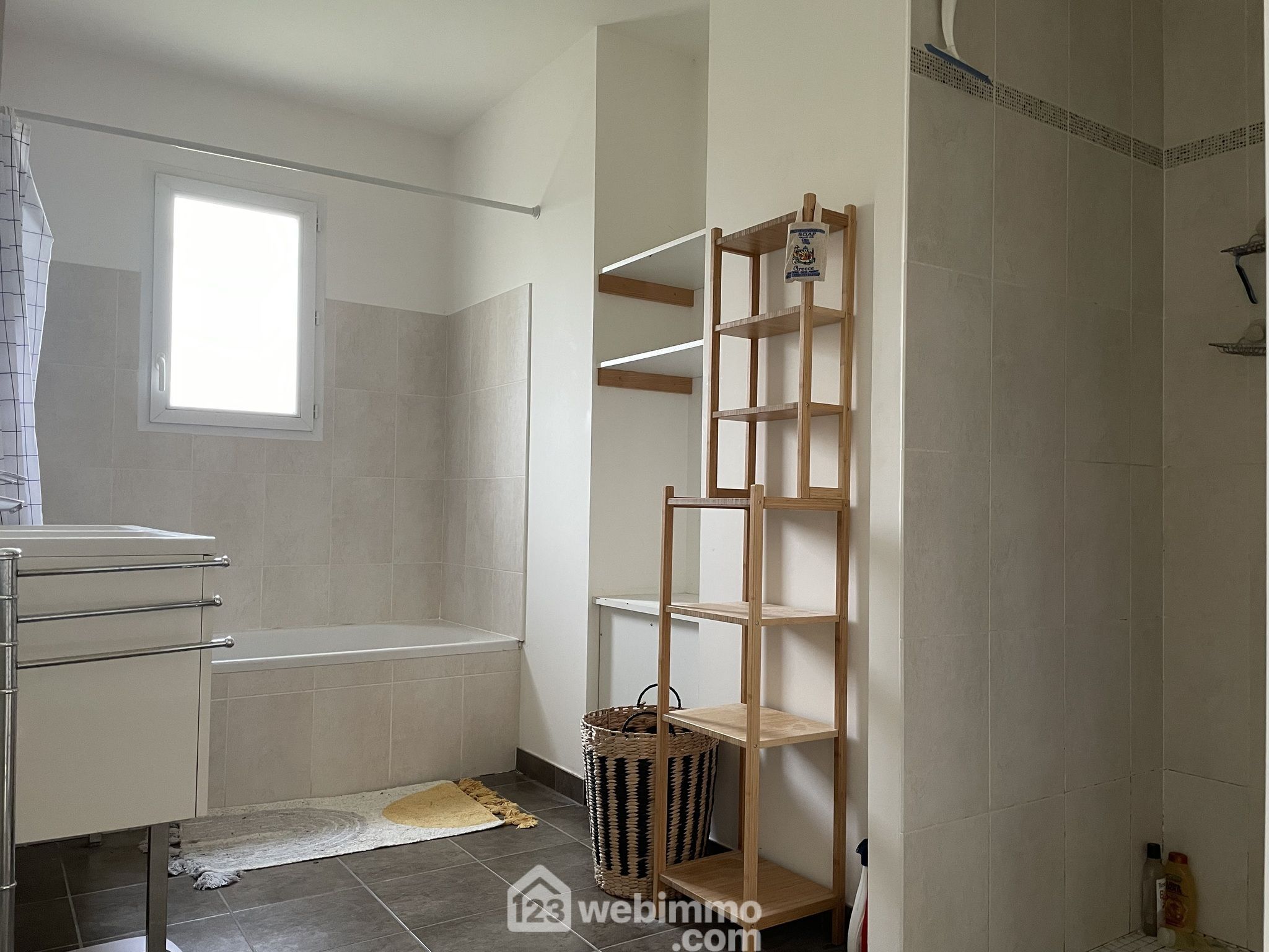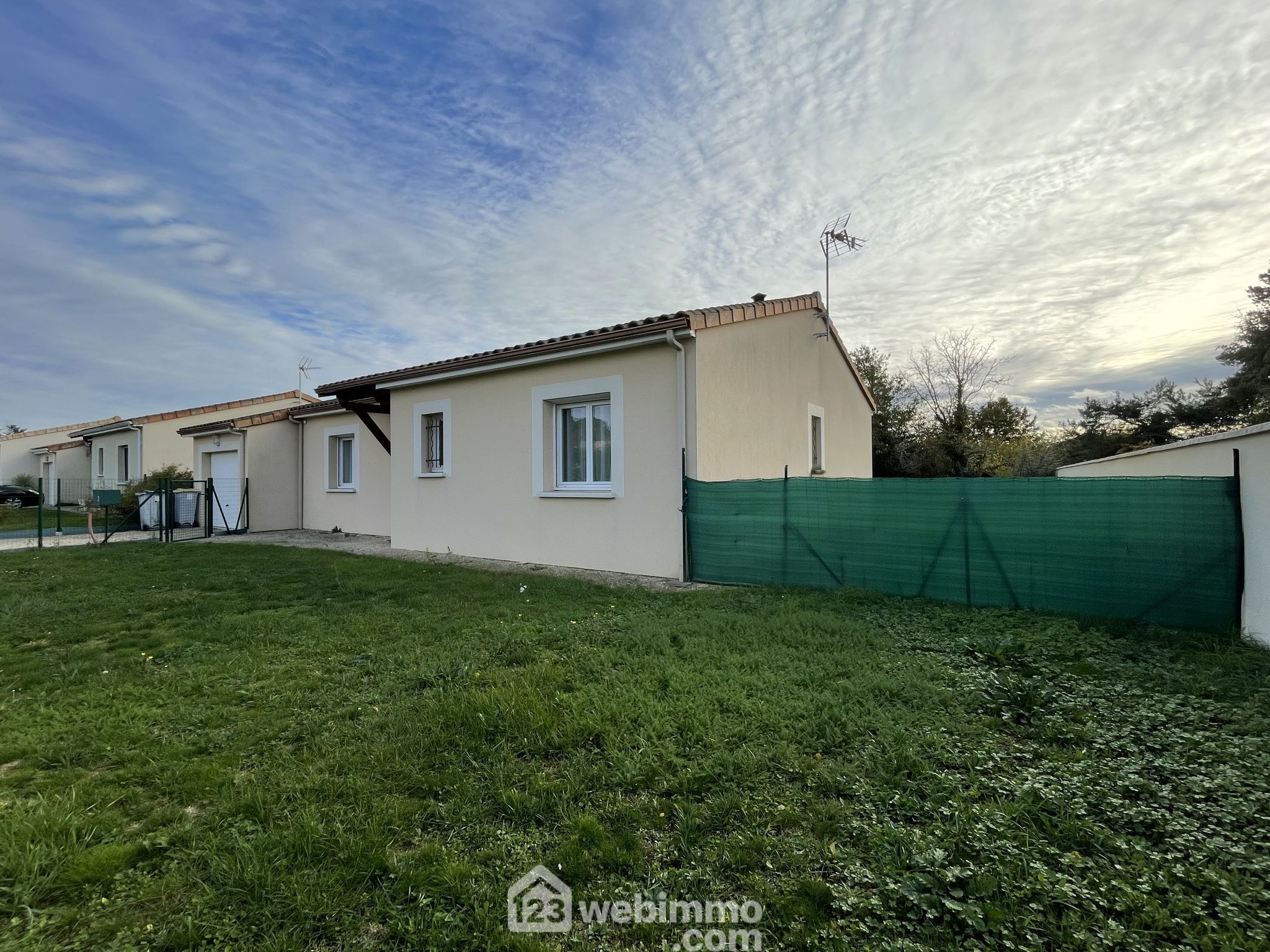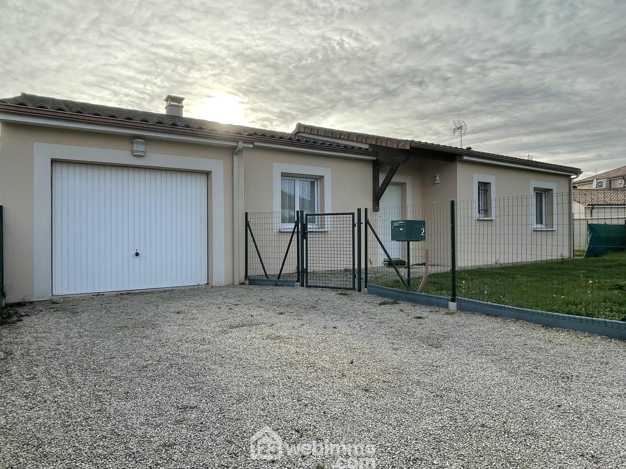 86360 Montamisé. Pavillon de 2012, au calme, proche de tous commerces, commodités, écoles et lignes de bus. Entrée, salon-séjour, cuisine ouverte aménagée et équipée, 3 chambres avec placards, salle de bains et douche, WC indépendant, cellier-buanderie, garage. Aucun travaux, prête à habiter. Chauffage au sol par PAC Air-Eau, huisseries double vitrage, Assainissement collectif. Jardin clos et aire de stationnement.