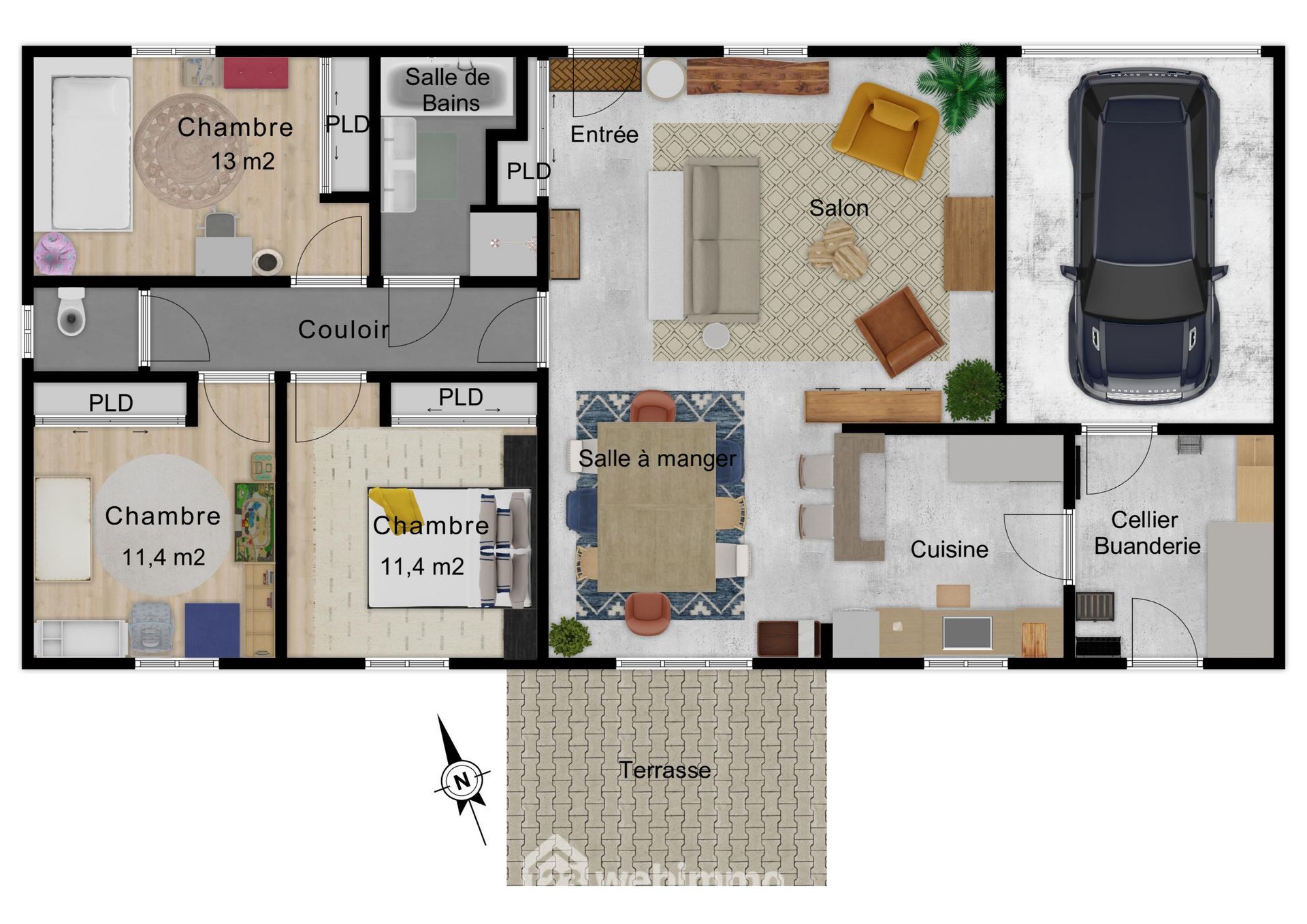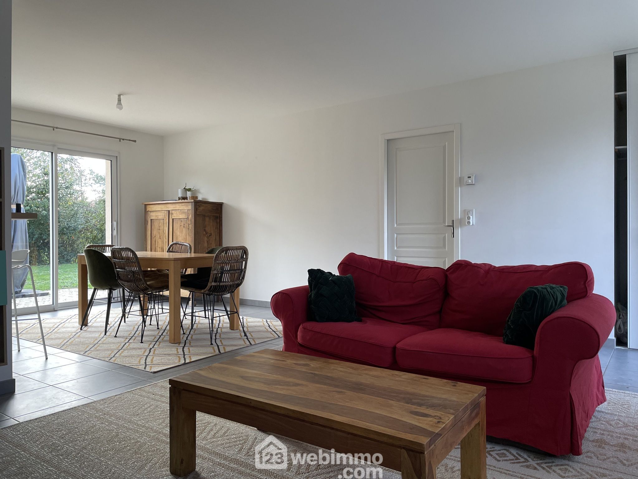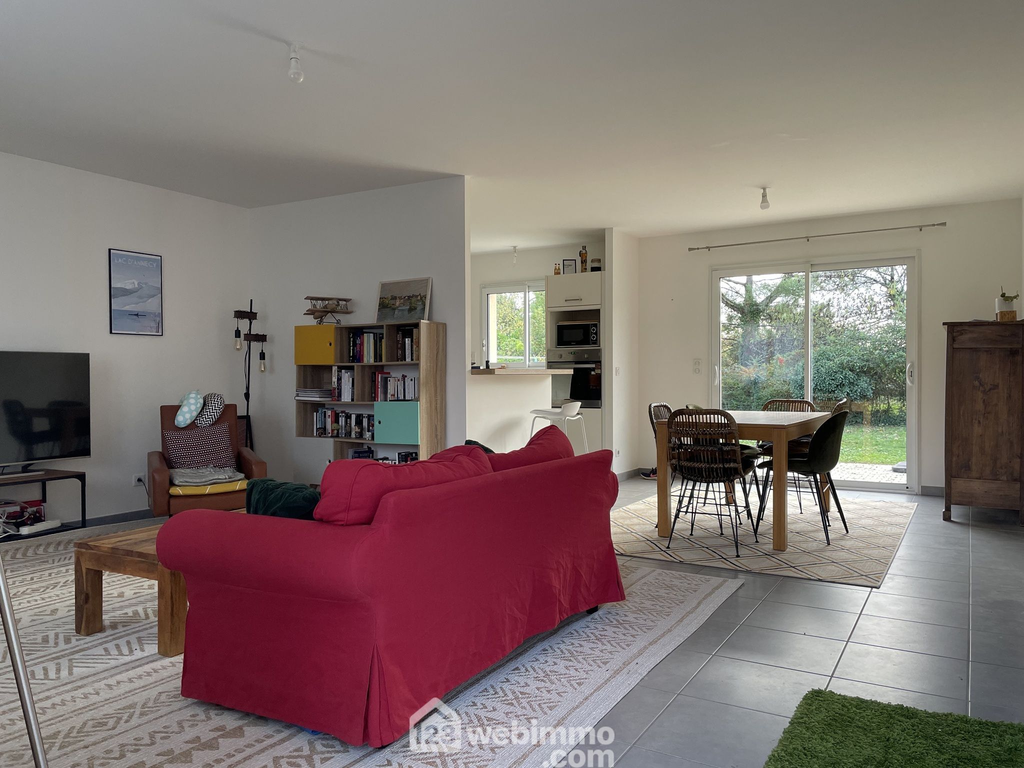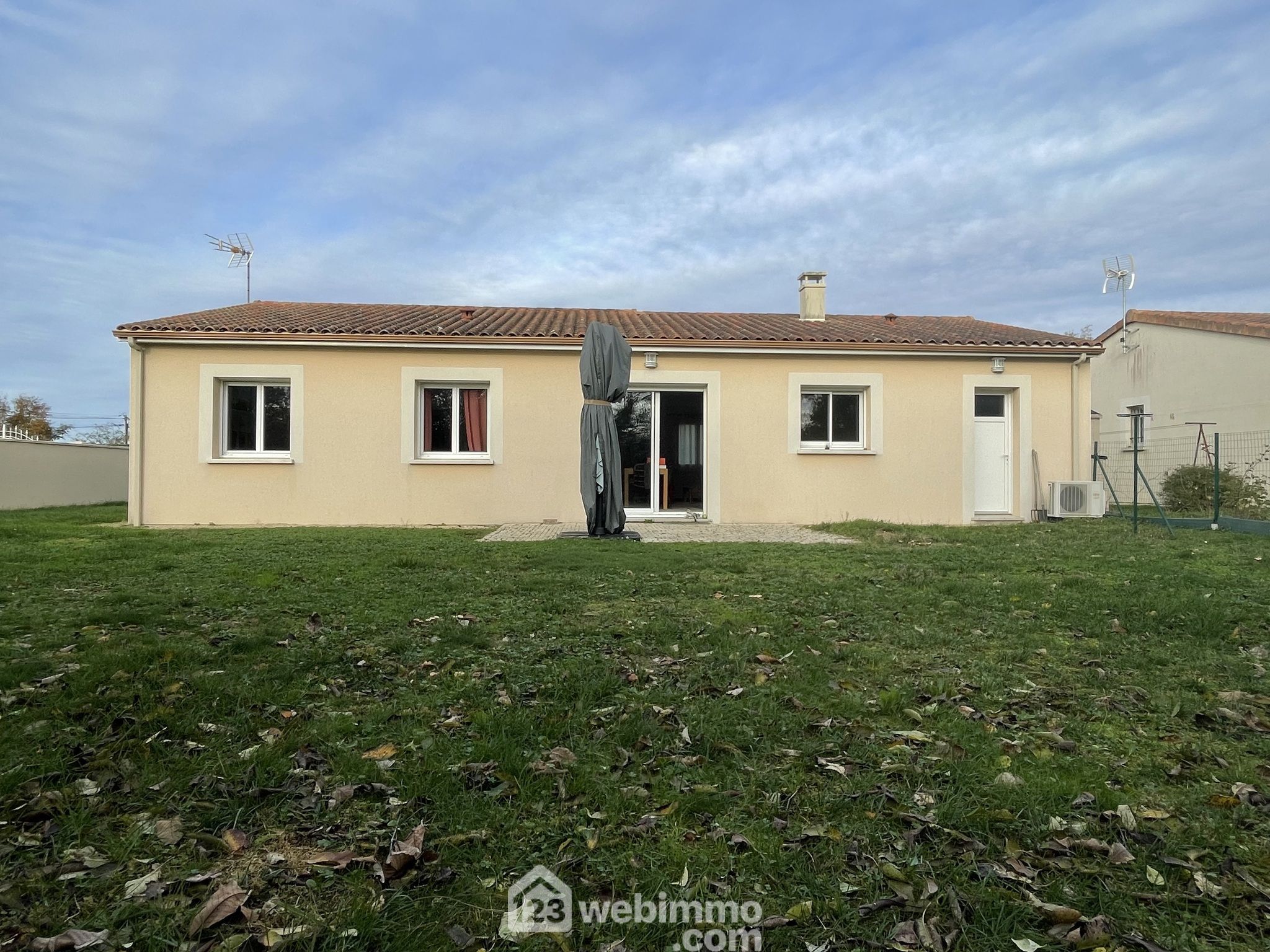 Maison de plain-pied, 4 pièces, 3 chambres, 102 m2 habitables environ, garage, terrain clos de 596 m2.