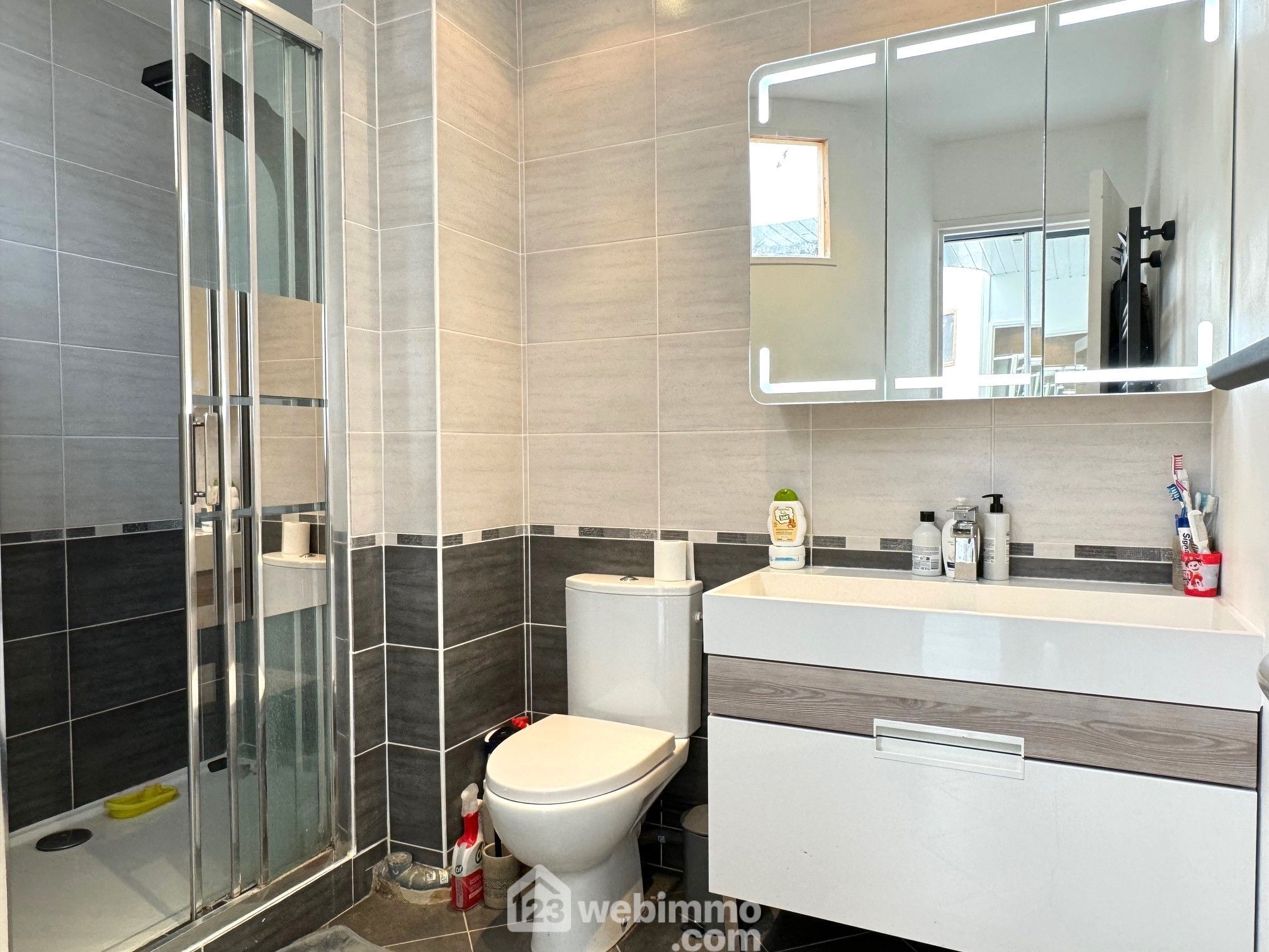 À l'étage, le pavillon comprend trois chambres, chacune offrant un espace de repos confortable. Une salle de d'eau complète ce niveau, offrant tout le nécessaire pour votre confort quotidien.