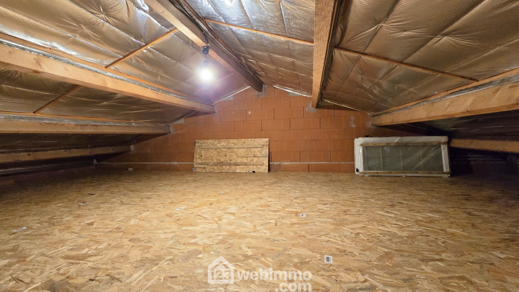 Attenant et accessible depuis la cuisine, garage de 41 m2 avec porte motorisée. Au-dessus, un étage a été idéalement créé pour offrir un espace de stockage très conséquent.