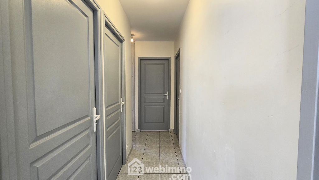 Entrée avec placard, pièce de vie très lumineuse de 58 m2 avec cuisine ouverte, aménagée et équipée, dégagement, 3 chambres de 9,30 à 12 m2, chacune équipée de grands placards intégrés, salle de bain avec double vasque, baignoire et douche, WC indépendant.