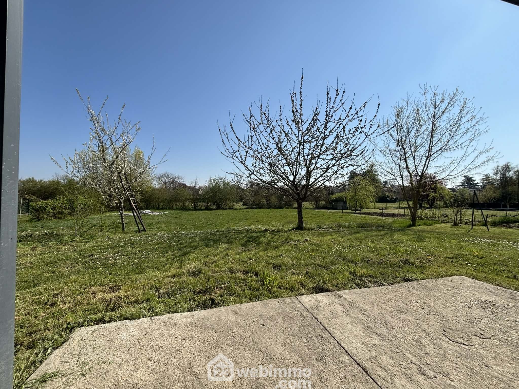 Le jardin est arboré et aménagé avec une cour gravillonnée, une vaste étendue de gazon, une terrasse et et un abri de jardin de 4 m2 démontable.