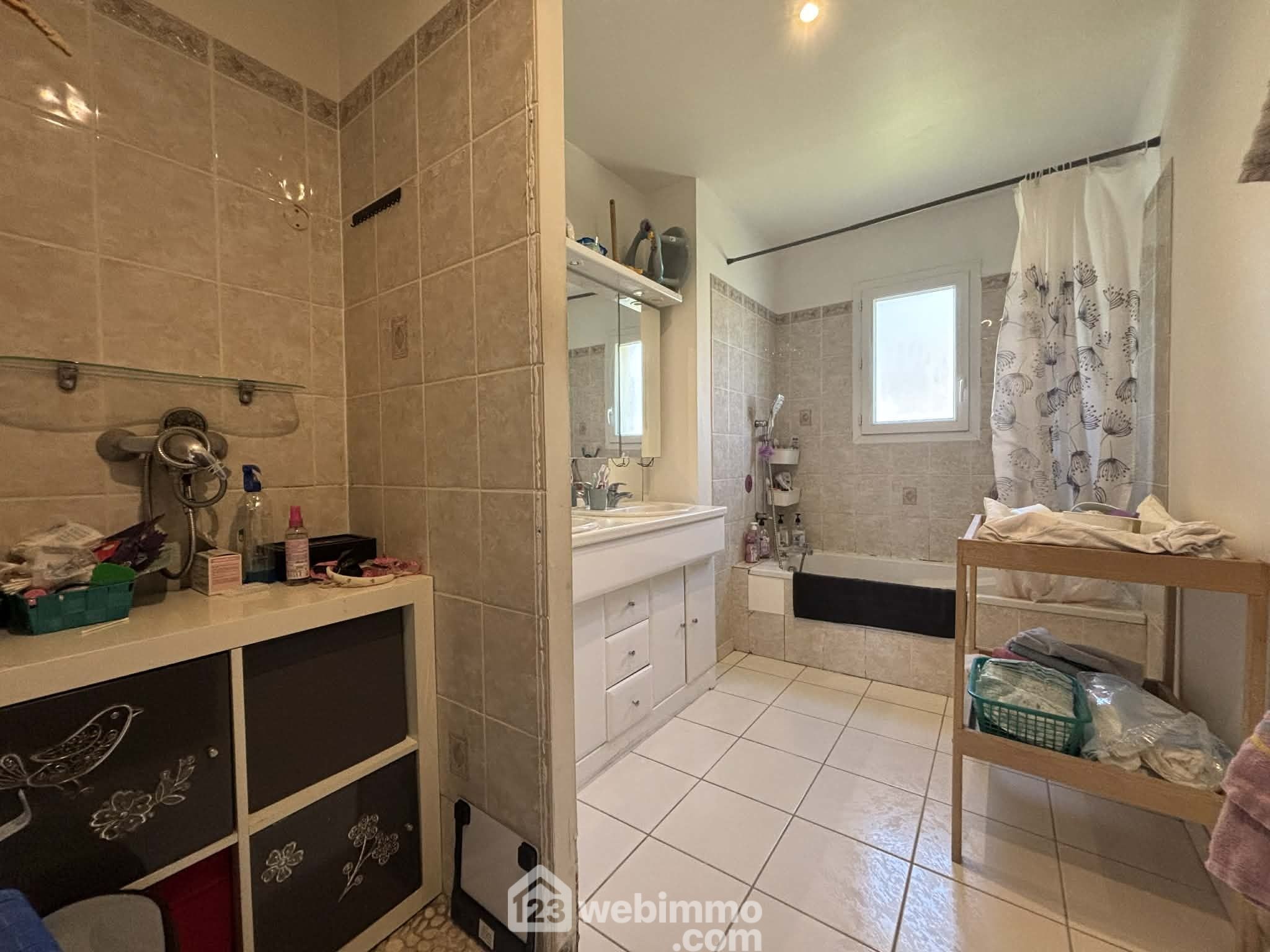 Entrée par le séjour avec cuisine ouverte aménagée et équipée, 4 chambres de 10 m2 environ avec rangements, salle de bain avec la possibilité d'avoir une douche et une baignoire comme l'installation d'origine, un WC indépendant, un cellier et un garage.