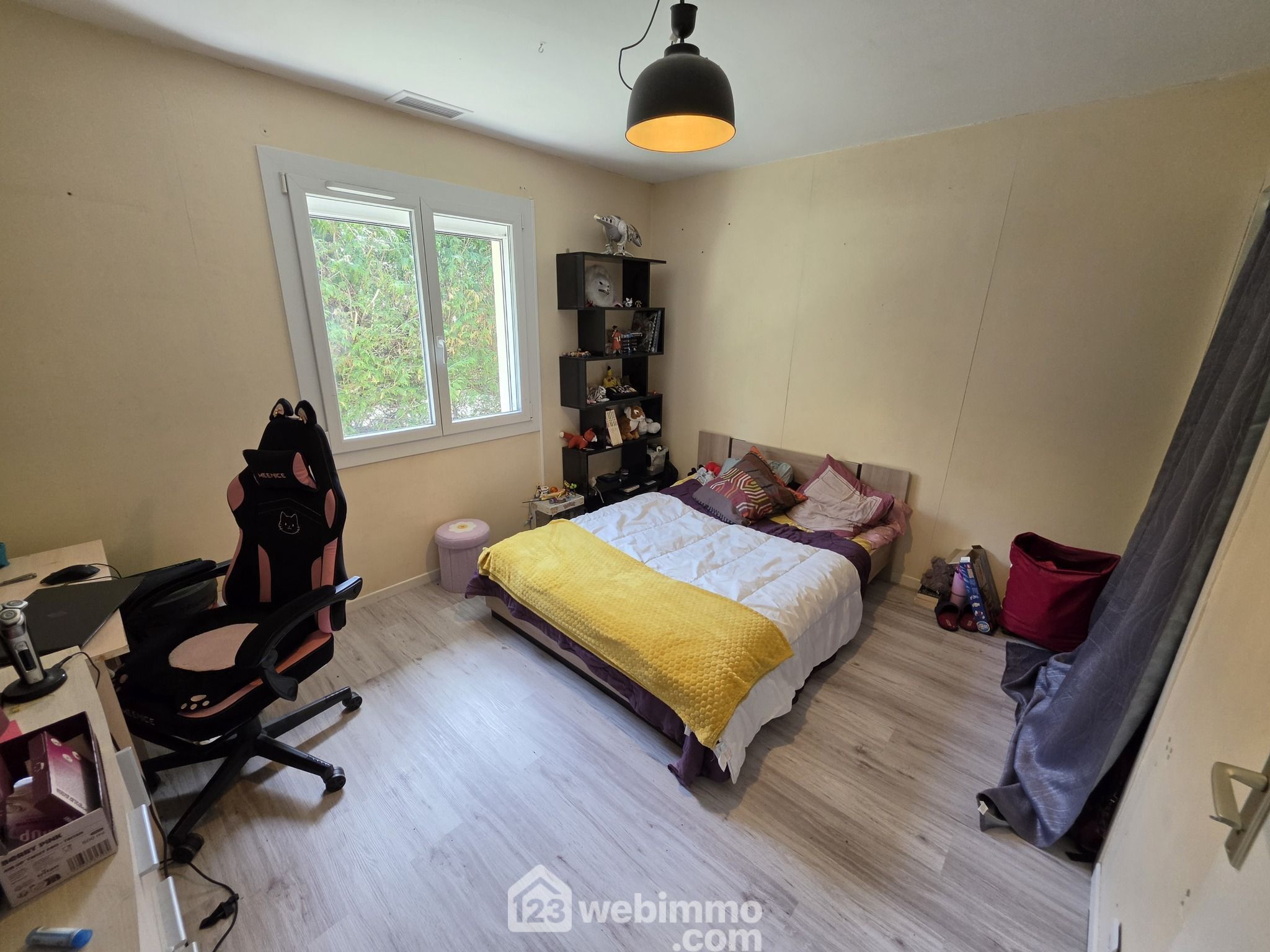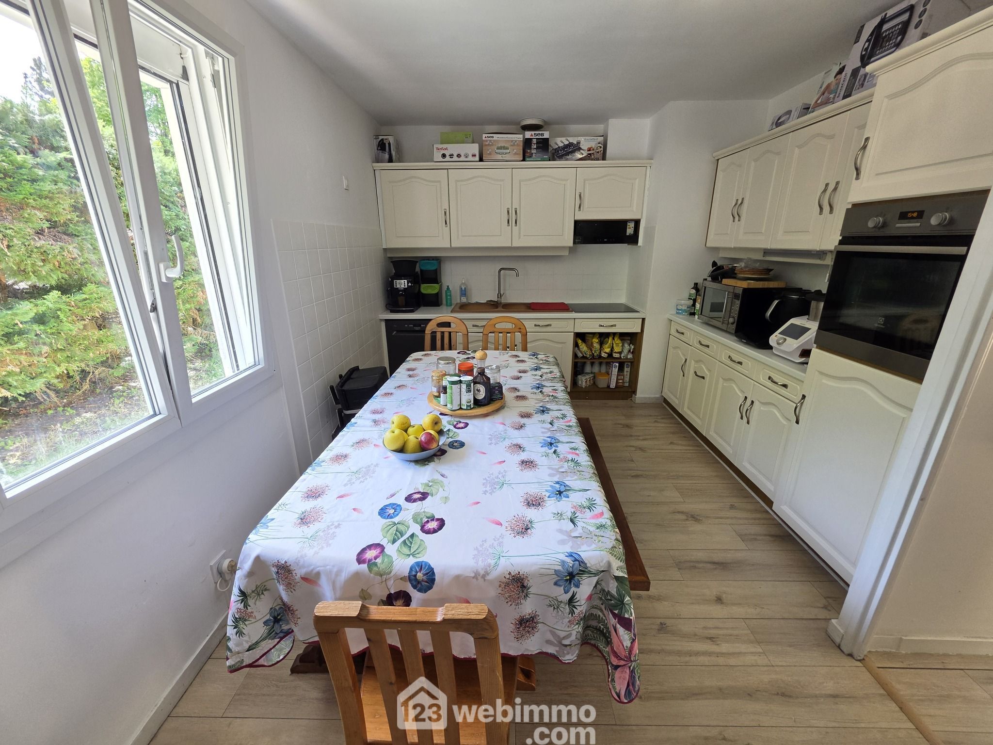 Salon-séjour, cuisine indépendante, trois chambres, un bureau, salle d'eau et WC indépendant.