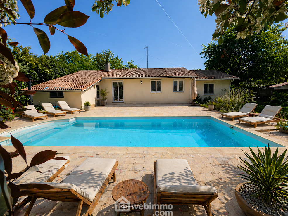 Au Pian-Médoc, proche écoles et commodités, beaucoup d'atouts pour cette maison de trois chambres et bureau avec piscine et au calme !!