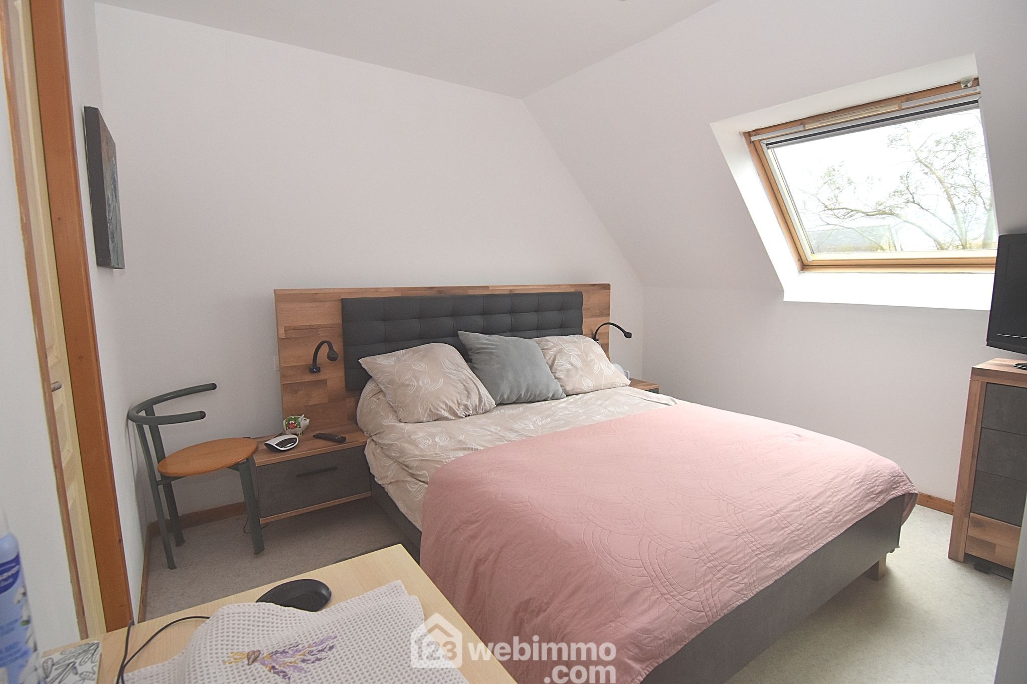 Proche du bourg de Rostrenen, très belle maison lumineuse et fonctionnelle de 2003 sur parcelle de 2011 m2, 5 chambres, double garage.