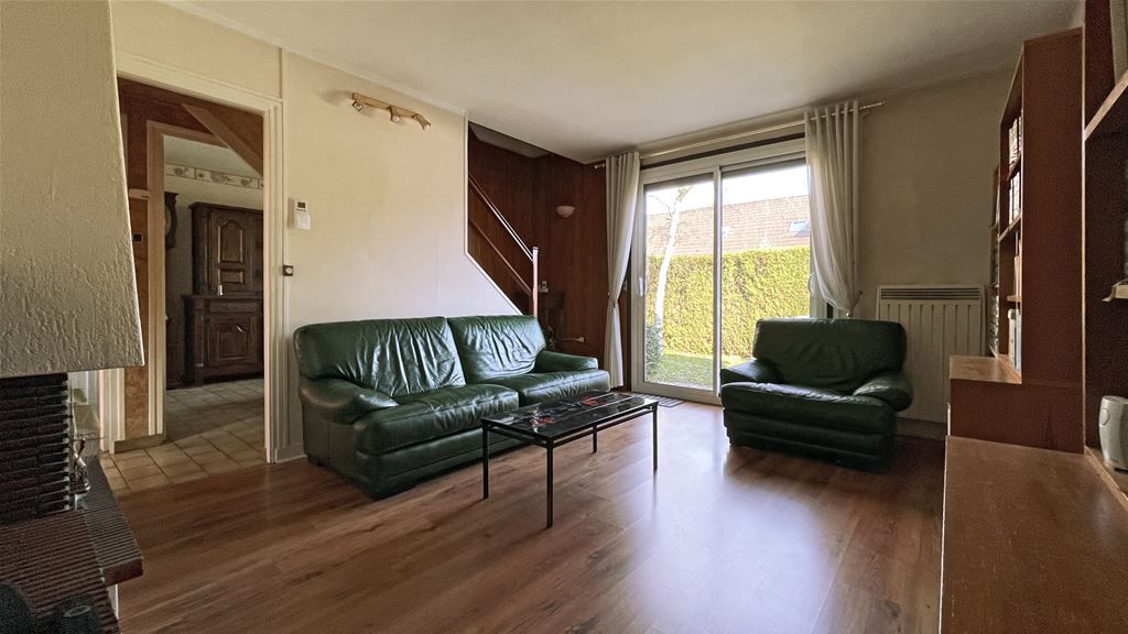 A 10 minutes à pied du centre-ville et proche de toutes commodités, maison mitoyenne de 105 m2 habitables avec garage attenant.