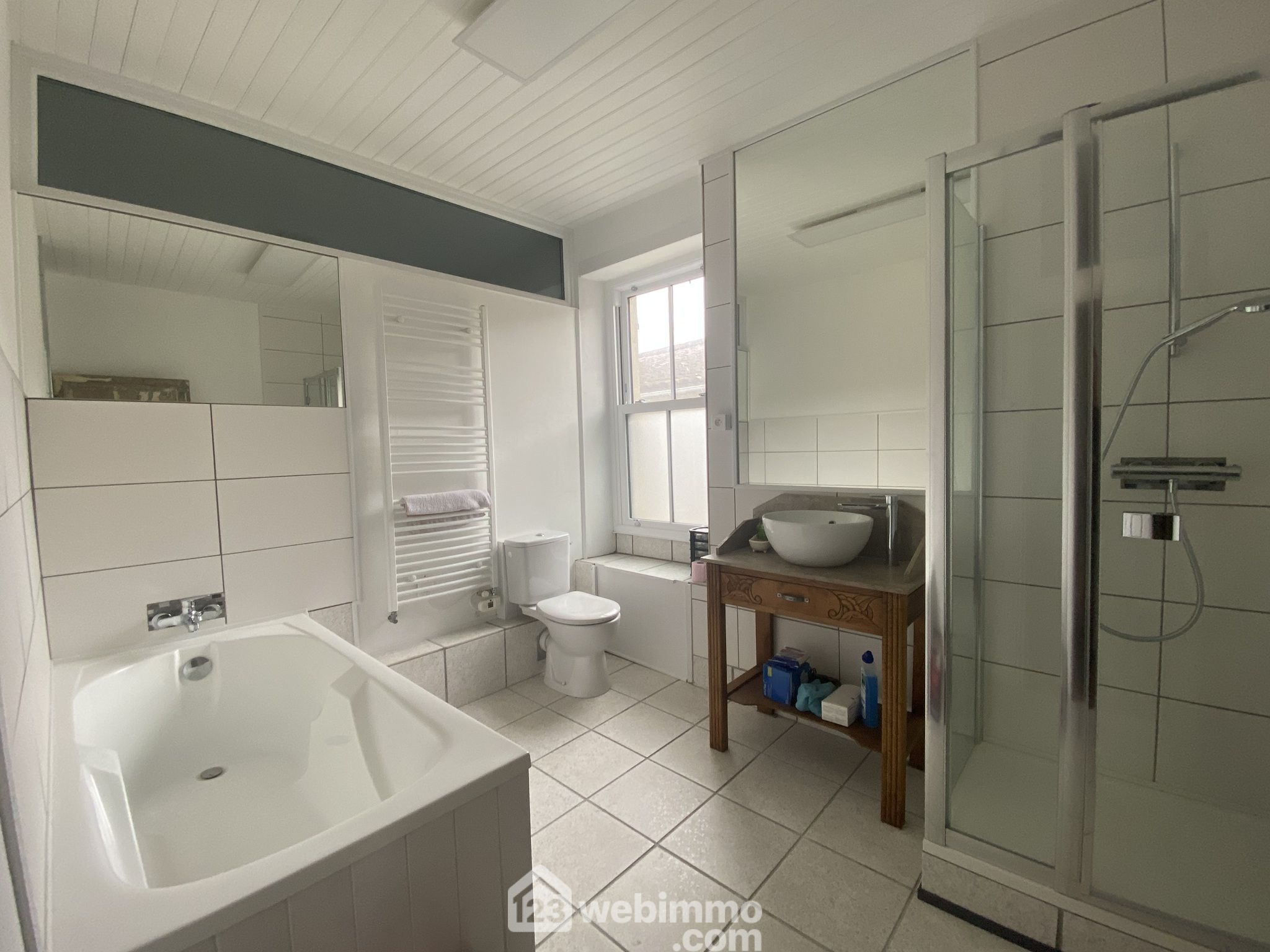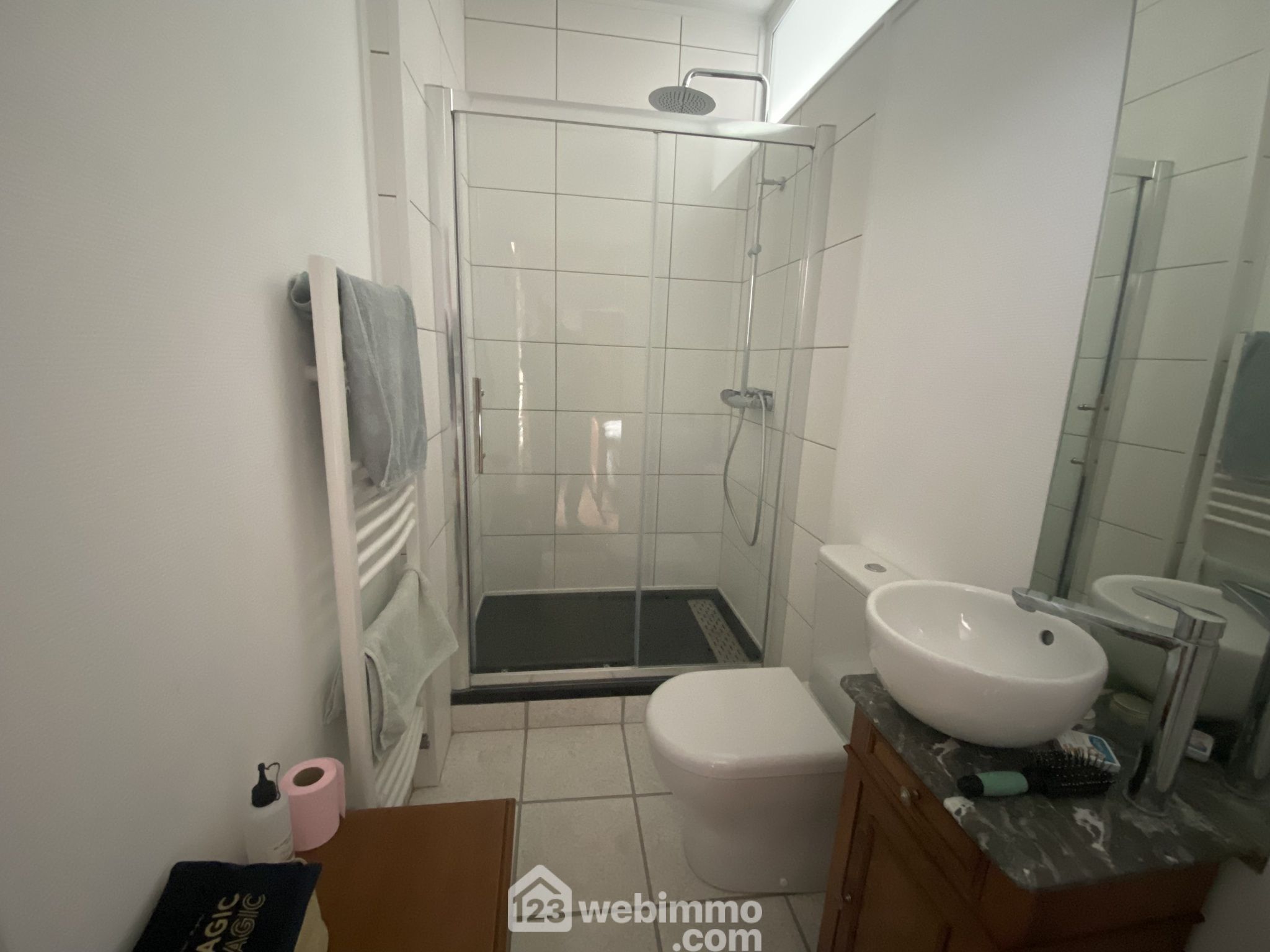 Une salle de bain récente aux finitions soignées