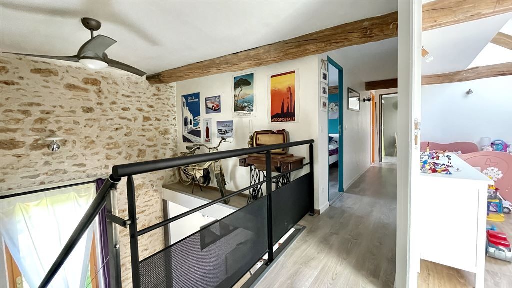 Sur une parcelle de 372 m2, cette maison en pierre offre en rez-de-chaussée une entrée avec placards, un séjour de 38 m2 avec cuisine américaine ouvrant sur une terrasse exposée sud-ouest, un espace cellier-buanderie, un wc séparé. A l'étage, un palier mezzanine avec coin bureau, 3 chambres, une salle d'eau avec wc. Garage de 24 m2 avec grande mezzanine de stockage. Coup de coeur assuré !