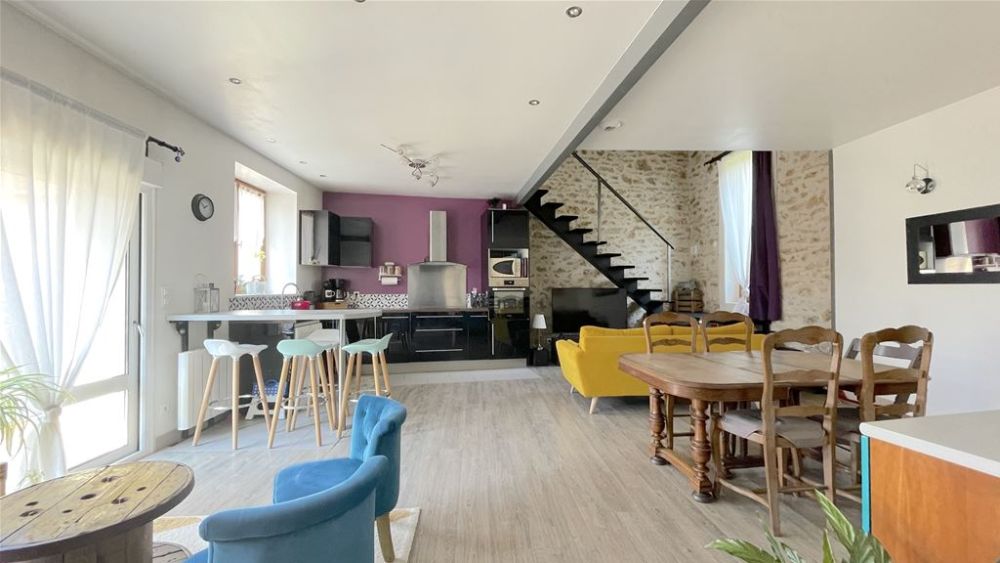 Charme et caractère pour cette ancienne grange aménagée en maison d'habitation de 105 m2 habitables avec garage indépendant.