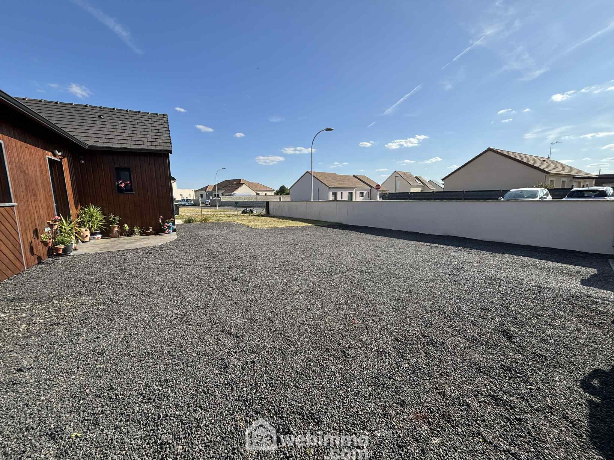 Terrain entièrement clos, portail électrique, cour gravillonnée et double garage de 68 m2 avec portes motorisées.