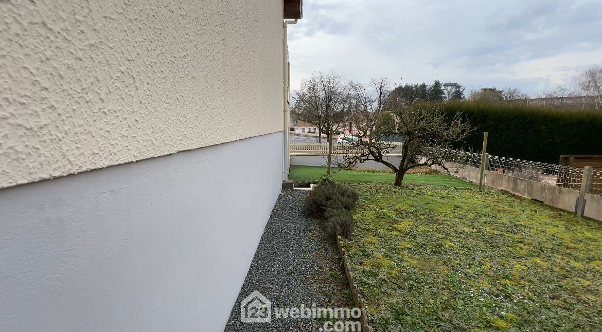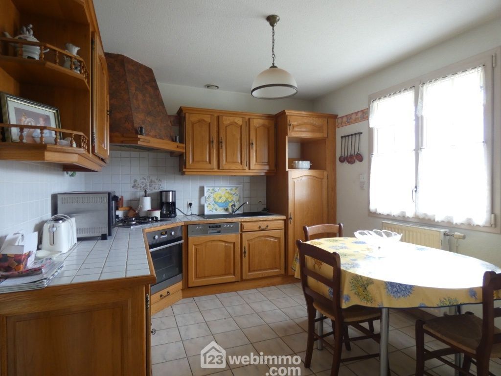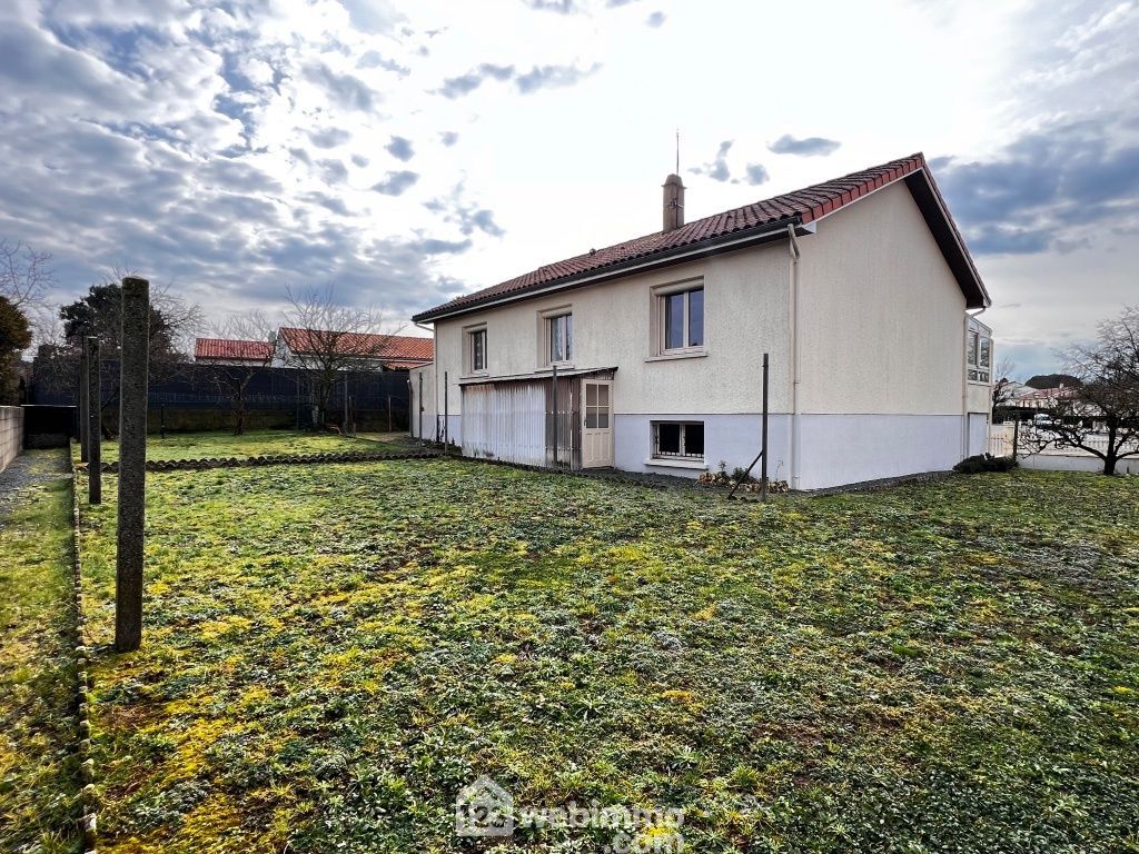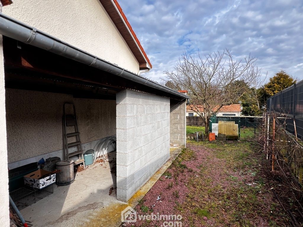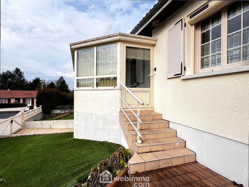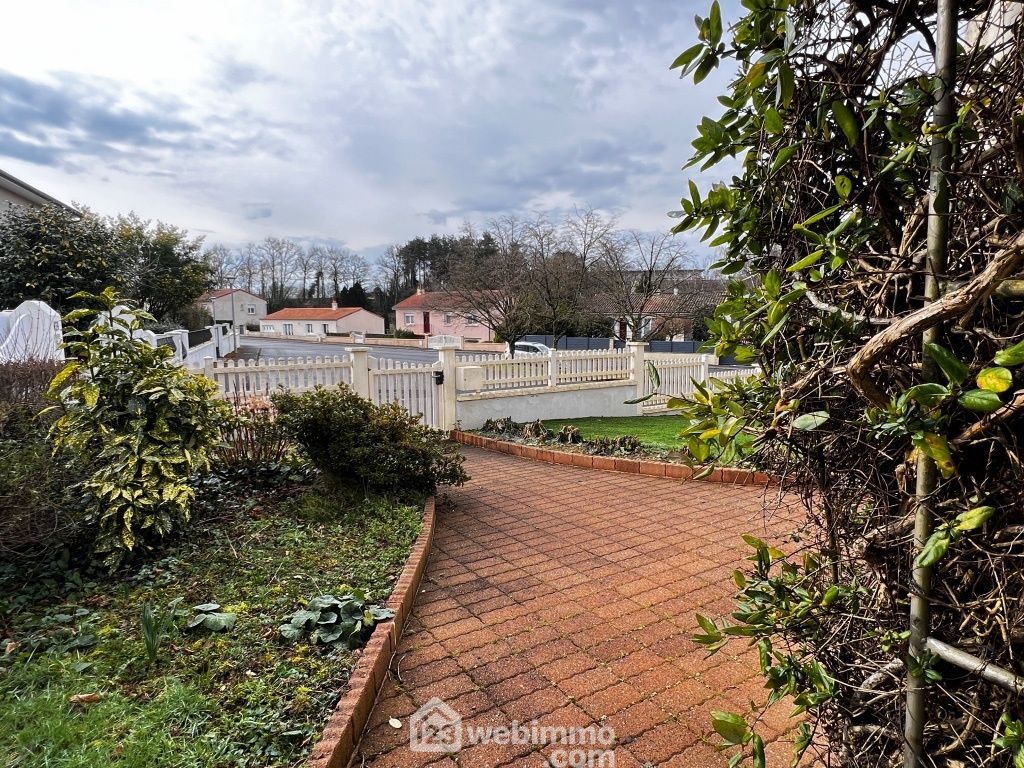 Maison avec vie de plain-pied, 107 m2 habitables, 5 pièces, 3 chambres, grand garage, sur un terrain clos de 551 m2.
