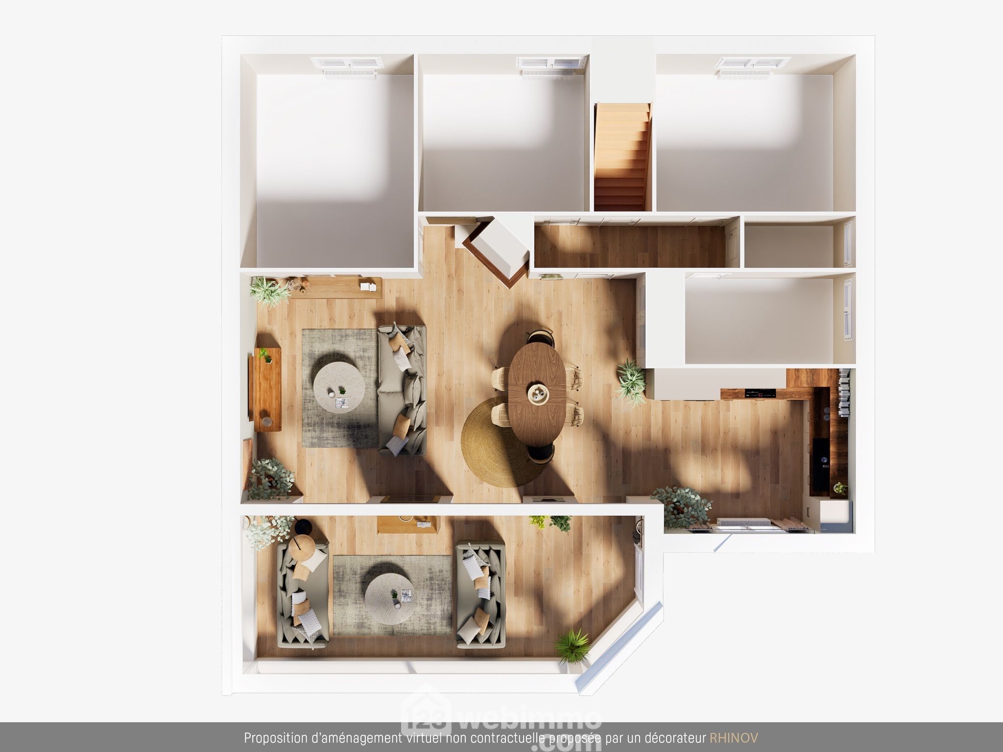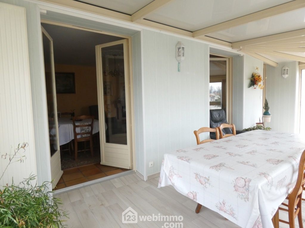 Entrée dans véranda chauffée (17 m2), dégagement, cuisine aménagée et équipée (11 m2), salon-séjour avec cheminée insert (27 m2), 3 chambres de 9,60 à 11 m2, salle d'eau aménagée rénovée (5 m2), WC.