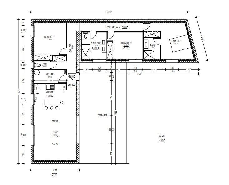 Livrable en avril/mai 2025, elle se compose d'une belle pièce de vie de 42m² avec cuisine ouverte et équipée, de grande qualité. Un couloir dessert un cellier, 3 chambres, dont une suite parentale, un wc, une salle d'eau. Chaque chambre possède son placard.