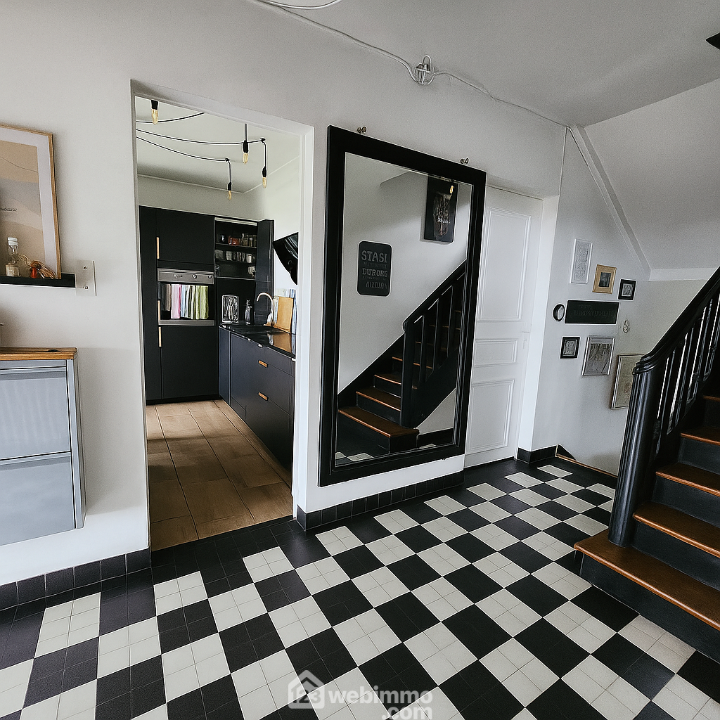 Idéalement située à deux pas de la gare, des commerces et des écoles, cette maison spacieuse et chaleureuse vous accueille avec un grand hall lumineux, une cuisine aménagée et équipée et un vaste salon-séjour convivial.