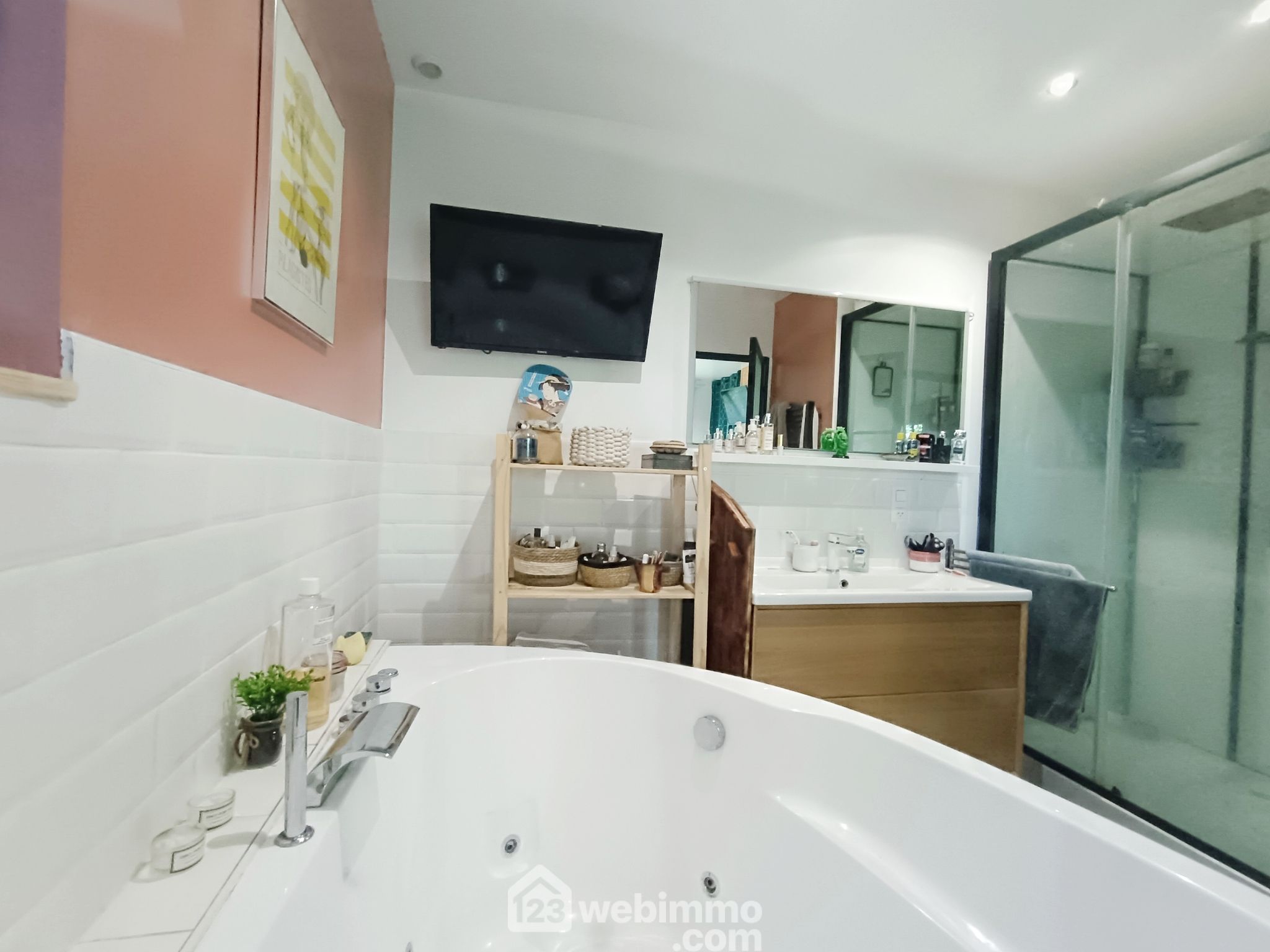 Au rez-de-chaussée, vous trouverez une suite parentale avec salle de bain balnéo et un accès direct à la terrasse. Une grande pièce de vie lumineuse avec cuisine ouverte aménagée/ équipée et poêle à bois offre un cadre chaleureux et convivial. À l’étage, trois chambres supplémentaires ainsi qu'une salle d’eau avec WC complètent l’espace nuit.