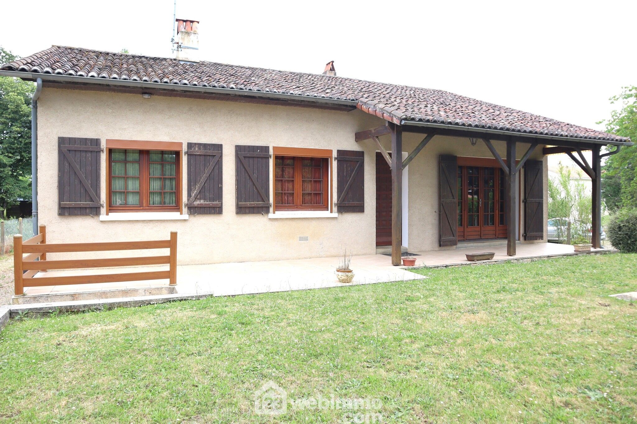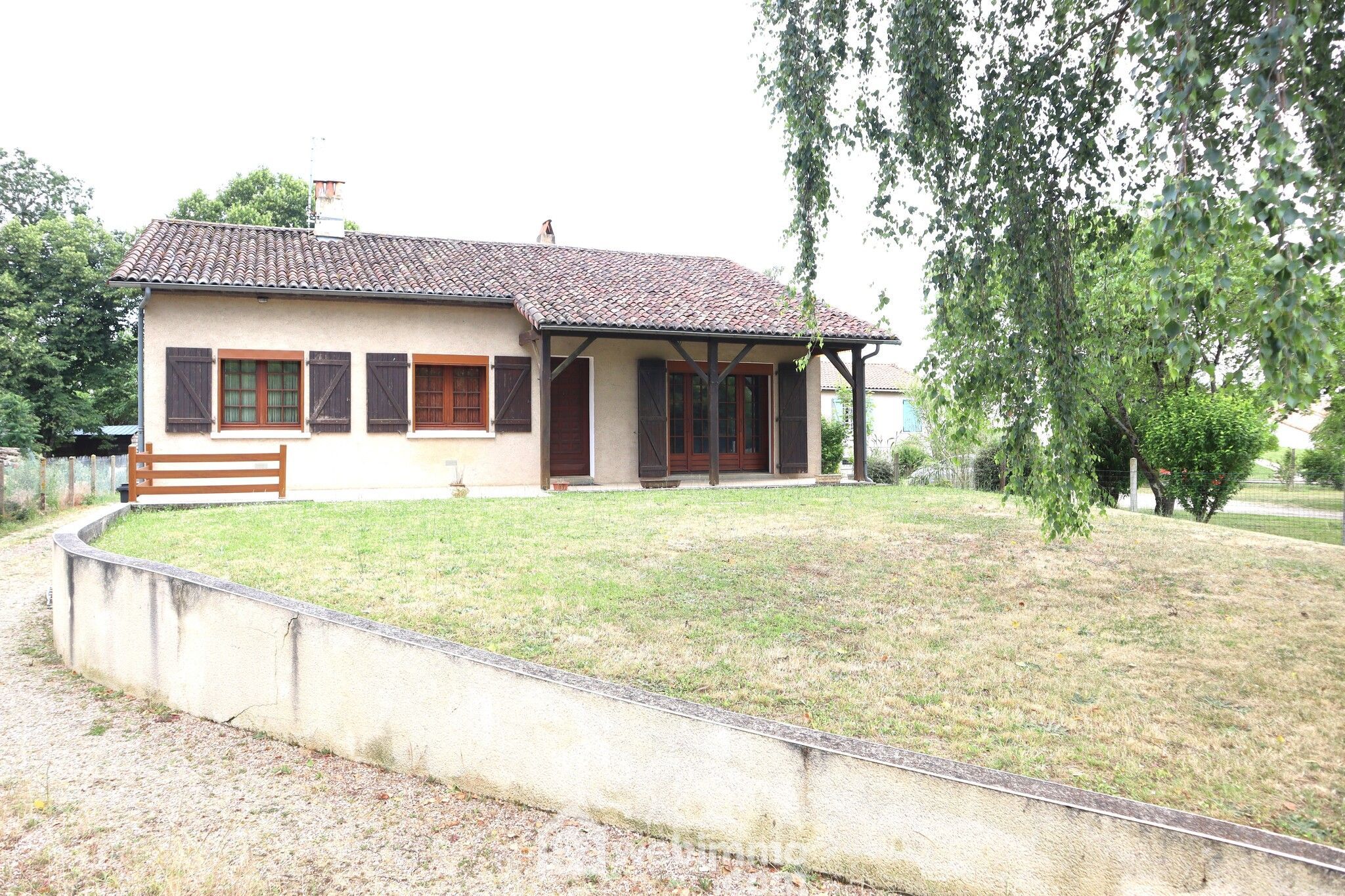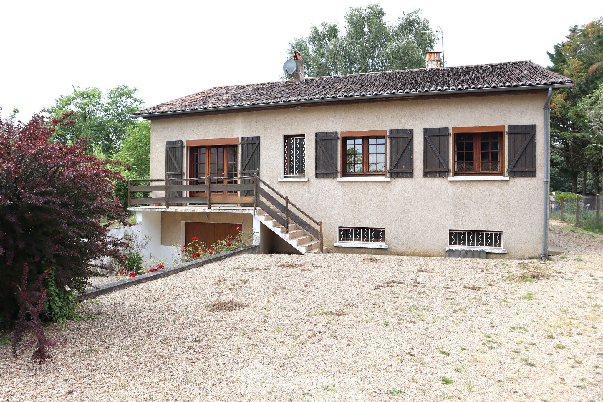 Maison avec vie de plain-pied, sur sous-sol, 109 m2 habitables, 4 pièces, 3 chambres. Terrain clos et arboré de 2187 m2.