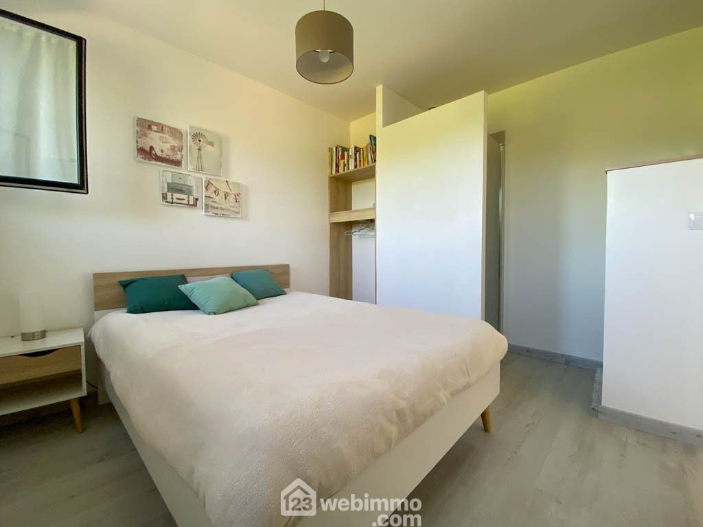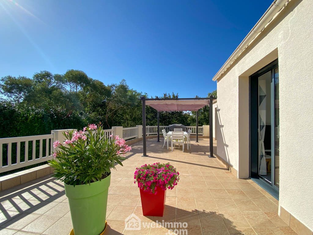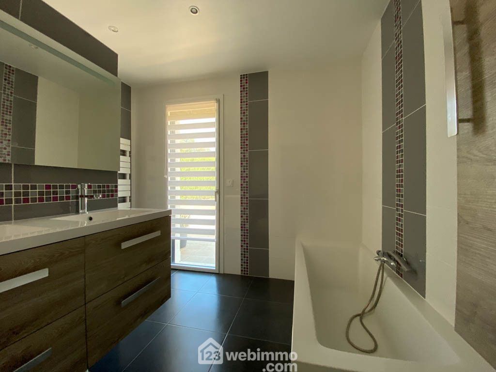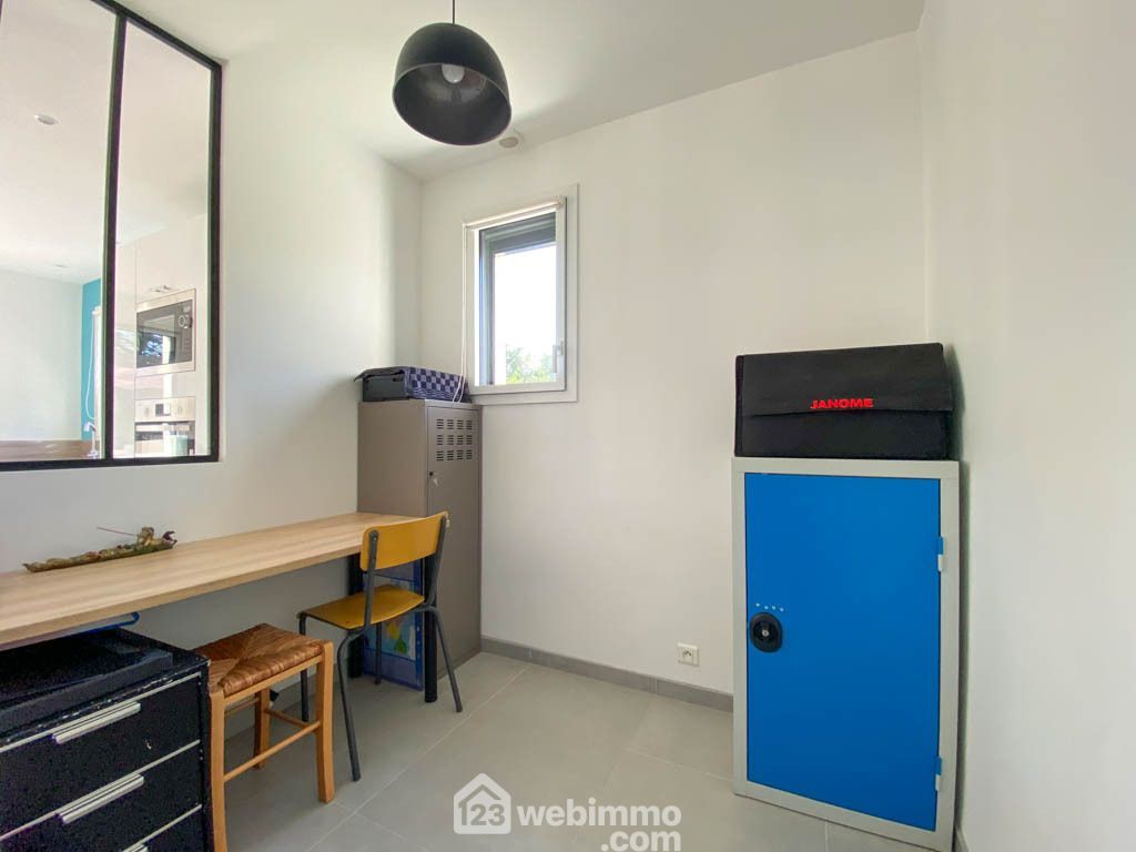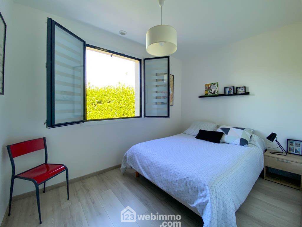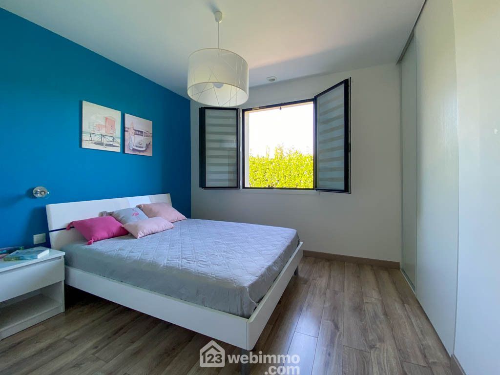 L’accès à la maison se fait par une entrée de plain-pied desservant une première chambre avec SDE, un bureau et une magnifique pièce de vie de 45 m². Celle-ci comprend : une cuisine moderne aménagée et équipée avec ilot central, un espace salle à manger et un salon avec cheminée insert. L'ensemble est baigné de lumière grâce une exposition plein sud et de très larges baies. Ces dernières ouvrent sur une immense terrasse panoramique en L avec vue sur le jardin sans aucun vis à vis. L’espace nuit propose, des WC séparés avec lave-mains, 3 chambres toutes équipées de placards, une SDB de 7 m² environ. Au sous-sol, une buanderie carrelée de 21 m², un garage avec portail motorisé pouvant accueillir un fourgon, une cave, une pièce supplémentaire de 23 m² et un préau de 39 m² environ.