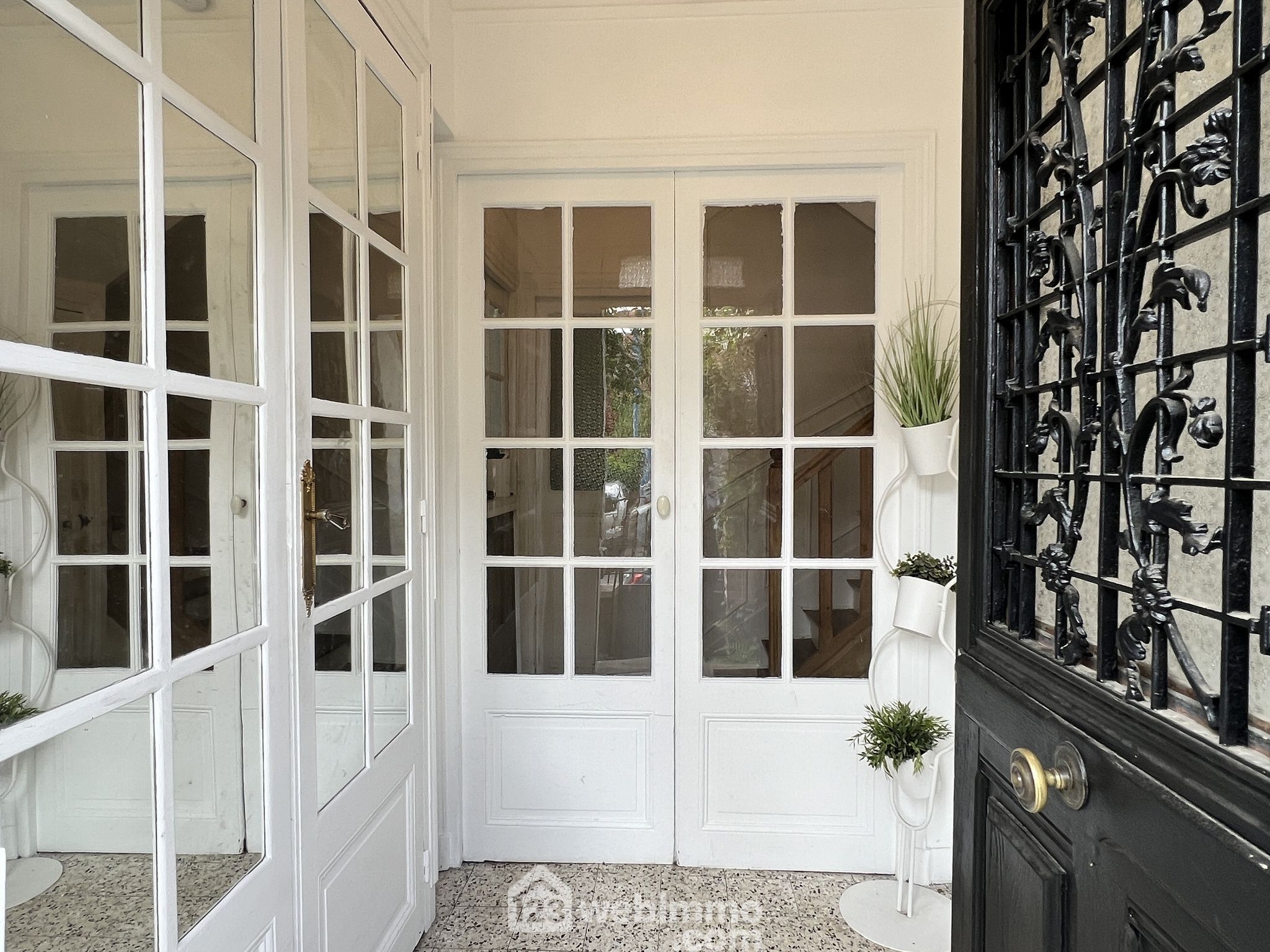 Cadre paisible et convivial, à proximité immédiate des transports et des écoles. Cette maison est édifiée sur un terrain arboré de plus de 300 m2 avec une dépendance (15 m2) en fond de parcelle et un garage indépendant. Erigée sur sous-sol total comprenant plusieurs espaces dont buanderie, chaufferie. Elle se compose, d'un rez-de-chaussée surélevé agencé d'une entrée avec cagibi et WC séparé, d'un dégagement, d'un beau séjour, traversant, avec cheminées, belle hauteur sous plafond, parquet et moulures. Contigüe au séjour, la cuisine aménagée avec un accès direct au jardin. A l'étage, dégagement, trois chambres, une salle de bains, un WC séparé. Accès aux combles (isolés) par un escalier de meunier (35 m2 au sol - Hauteur sous plafond 1.95 au faîtage - 1.66 m à mi-pente). Le sous-sol, la dépendance et les combles offrent des possibilités supplémentaires pour du stockage ou la création d'espaces de vie. Quelques travaux sont à prévoir.