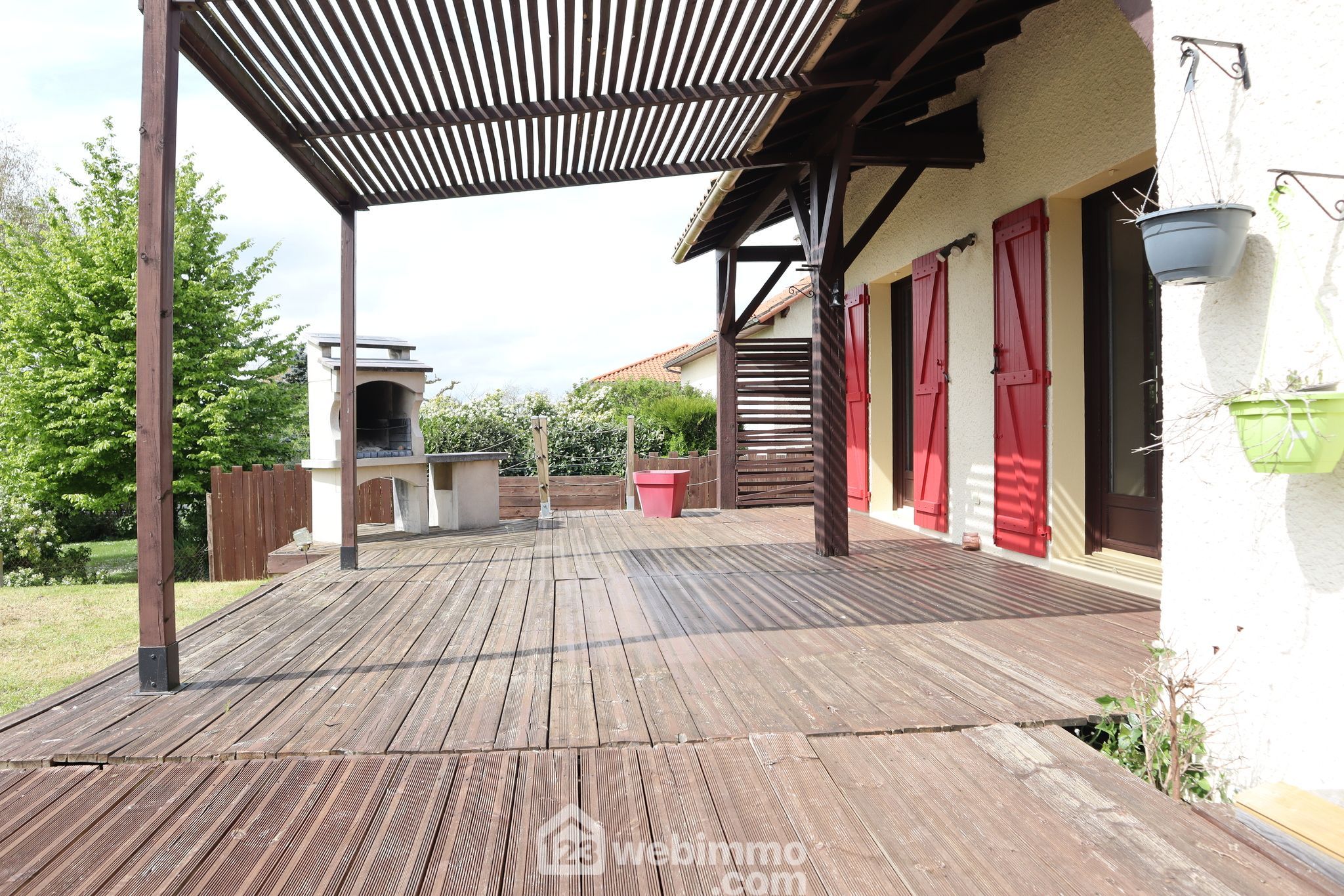Elle comprend au rez-de-chaussée surélevé : entrée avec placard, WC indépendant, cuisine aménagée/équipée semi-ouverte par un passe-plat, séjour avec poêle à bois GODIN, terrasse bois avec barbecue, dégagement, 3 chambres avec placard et salle de bain avec douche.