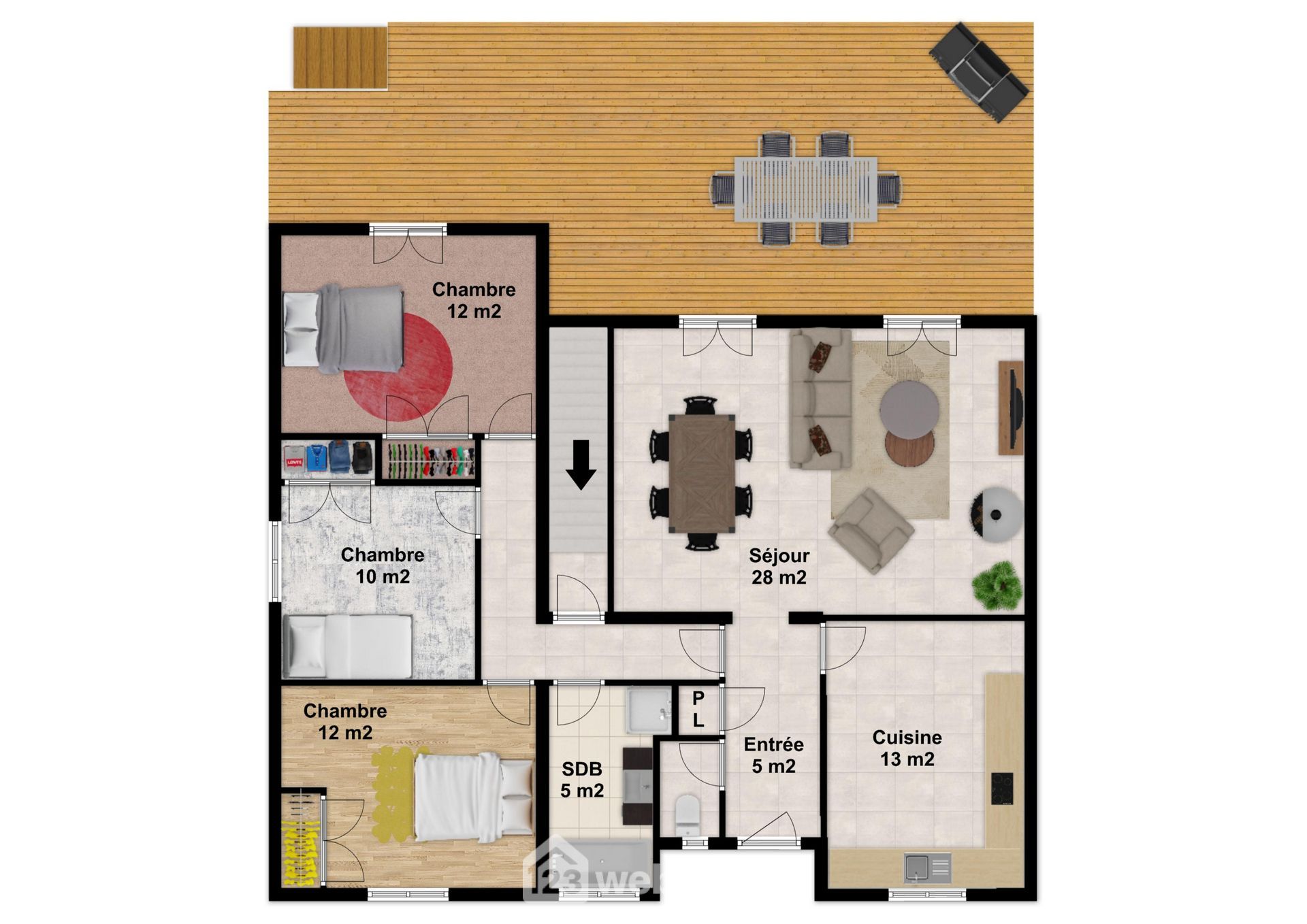 Maison sur sous-sol, 110 m2 habitables, 5 pièces, 4 chambres. Terrain de 1310 m2.