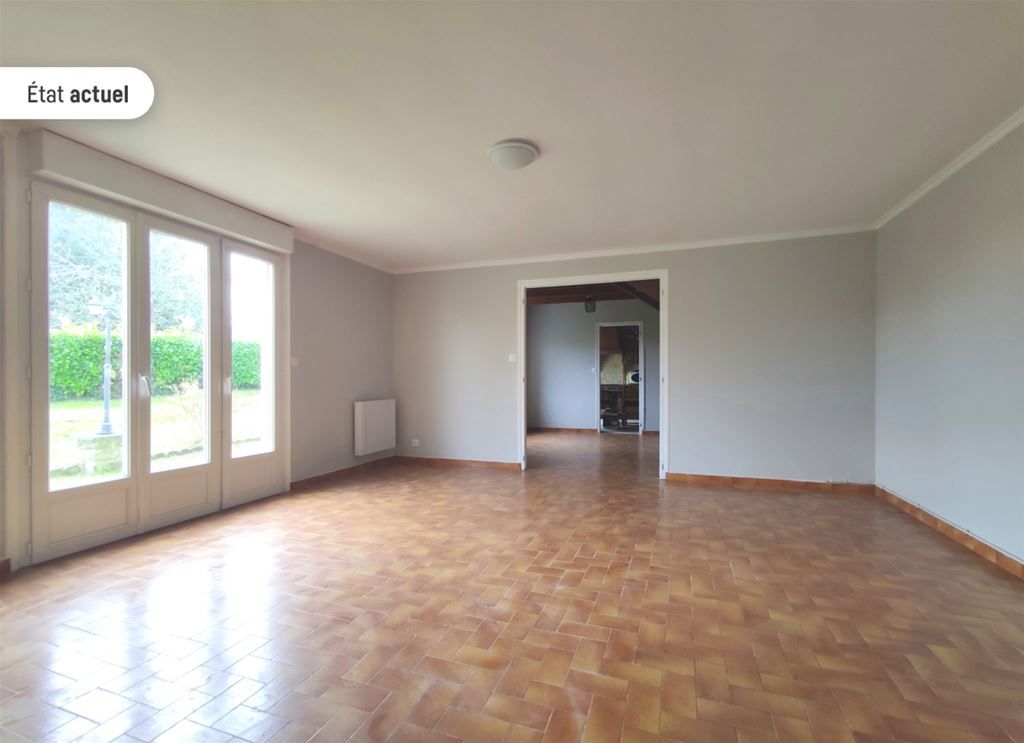 aménagée de 15m², d'un séjour de 16m² et en enfilade, un salon de 23m2. Une salle de bain à rafraichir et 1 WC séparé complètent le rez-de-chaussée.