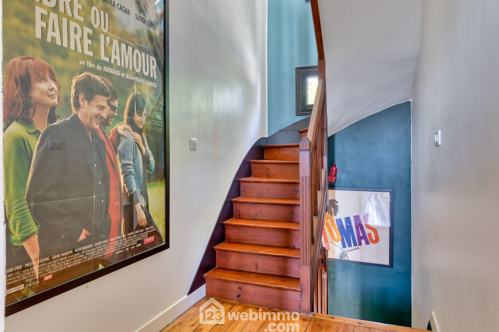 Au premier étage : palier; 2 grandes chambres; salle de bain avec douche.