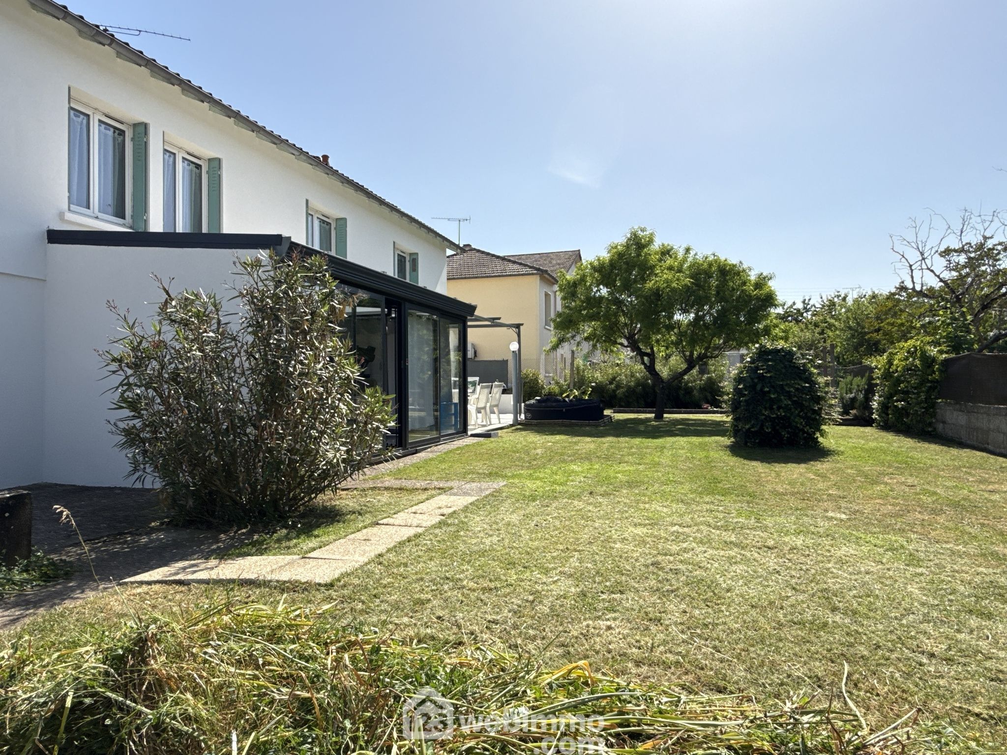 Maison vie de plain-pied, 111 m2 habitables environ, 5 pièces, 4 chambres, sous-sol complet, véranda, terrain clos de 537 m2.