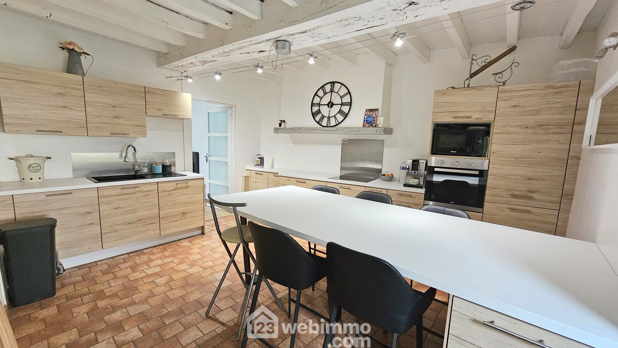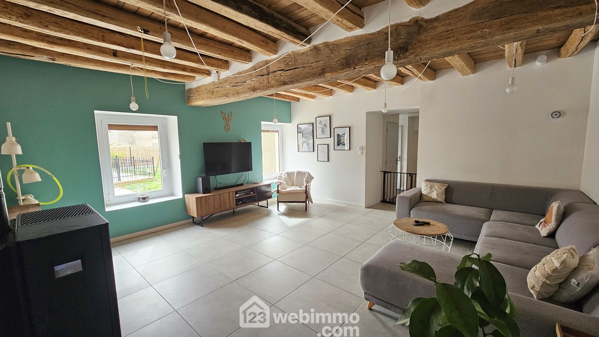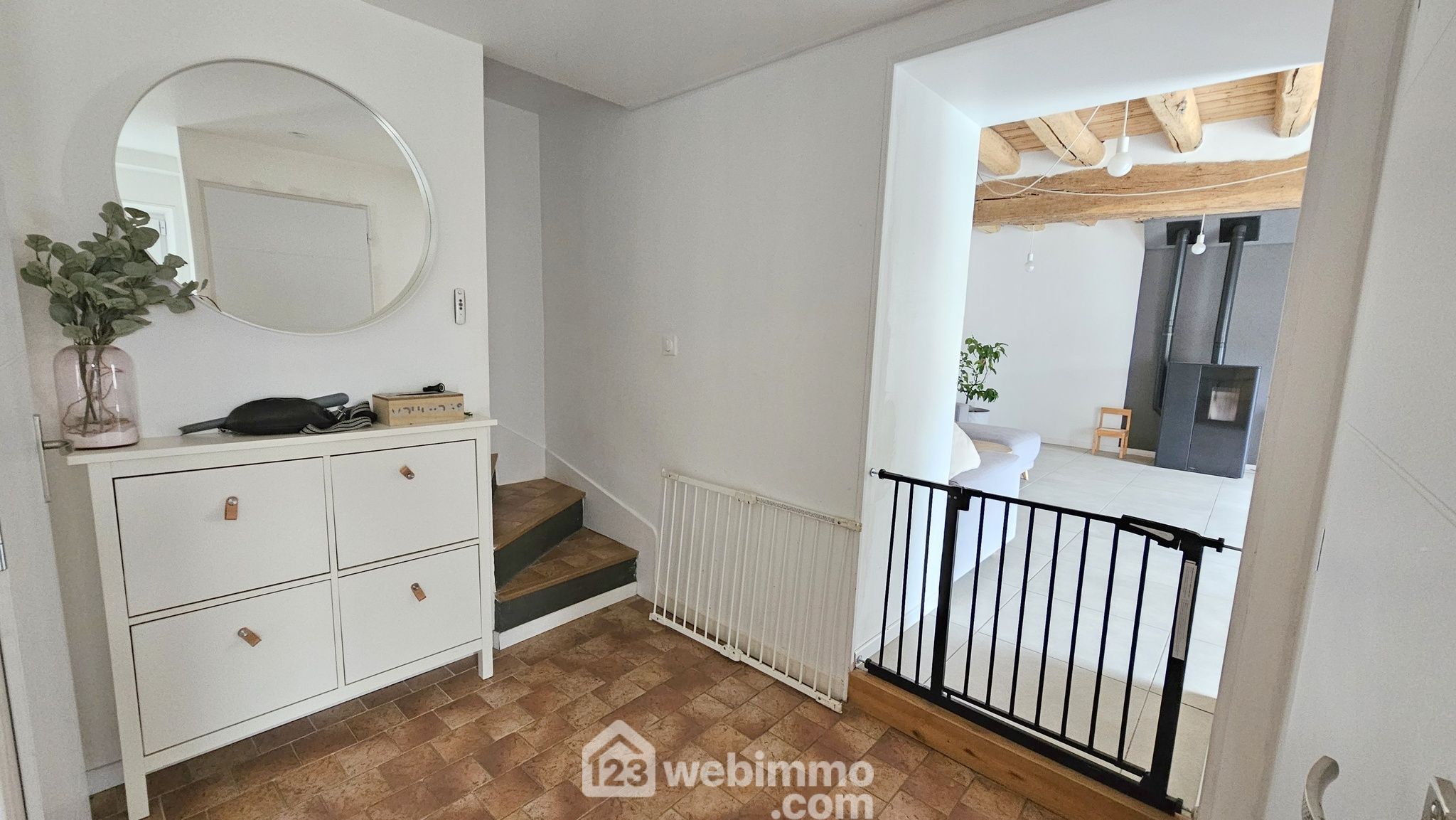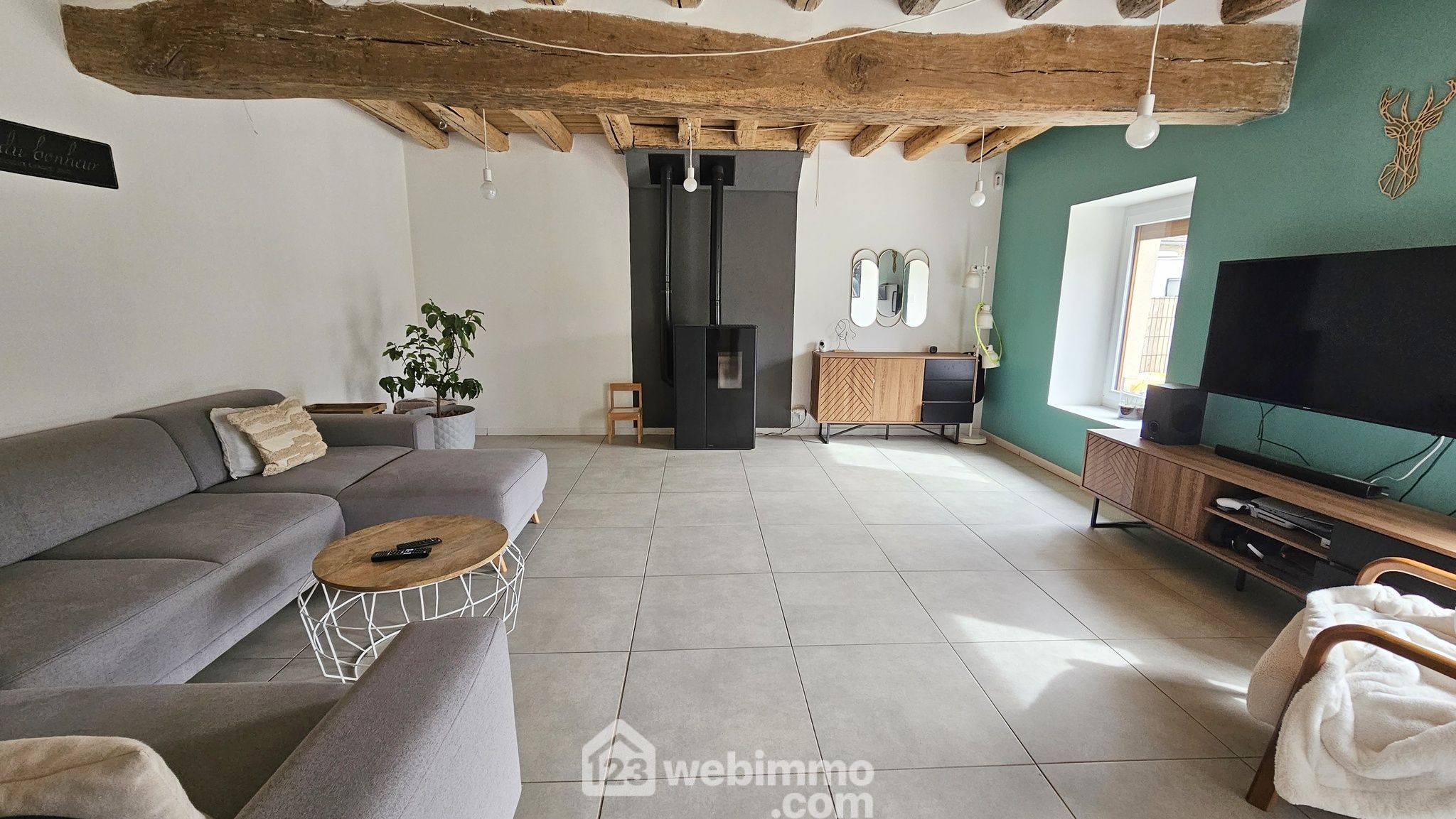 Dès l’entrée, le charme opère. Le séjour, chaleureux et baigné de lumière, révèle ses poutres apparentes et son poêle à granulés, promesse de douces soirées d’hiver. La cuisine, spacieuse et entièrement équipée, invite à la convivialité et s’ouvre directement sur une grande terrasse sans vis-à-vis, où les déjeuners ensoleillés deviennent une habitude.