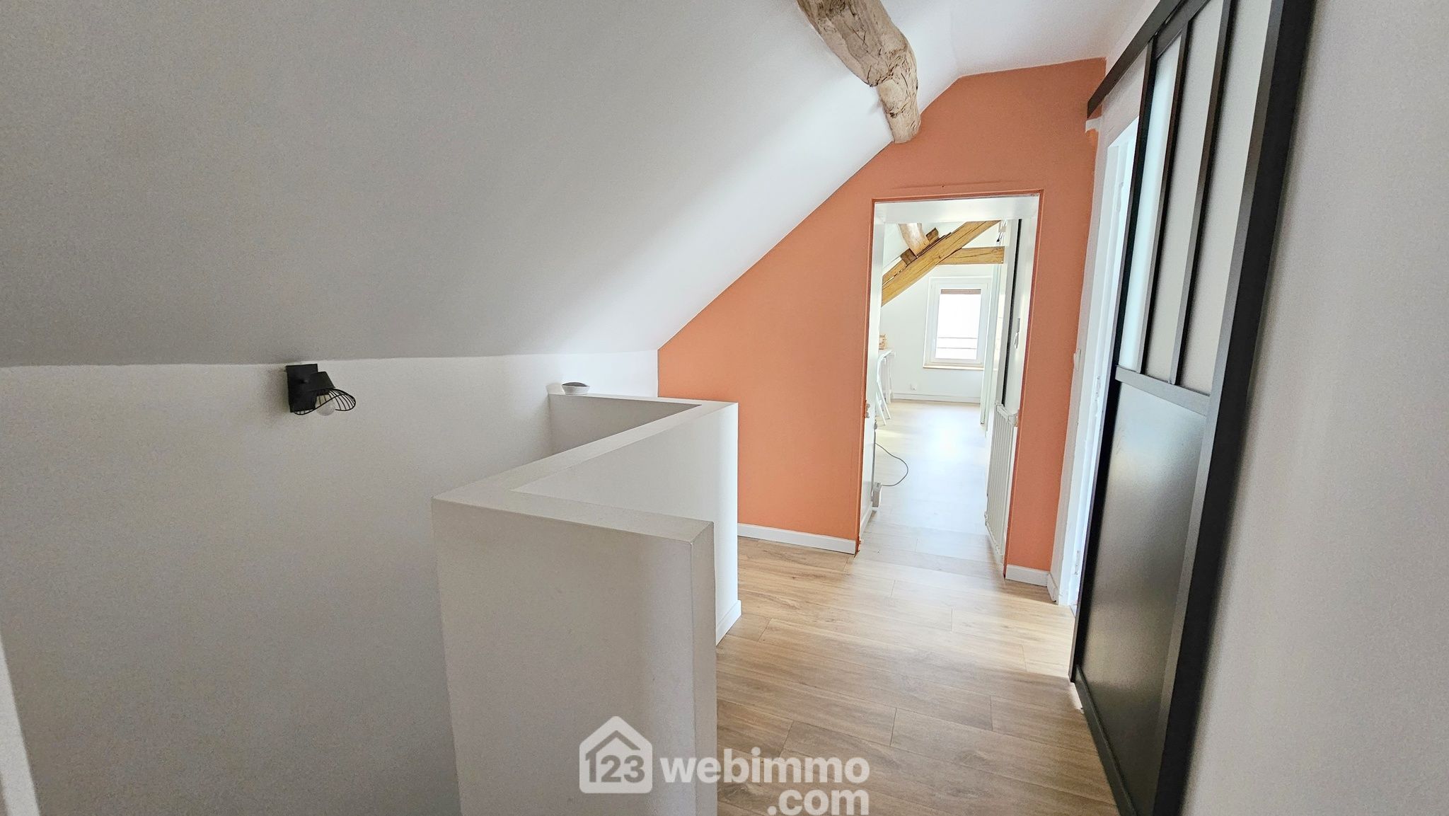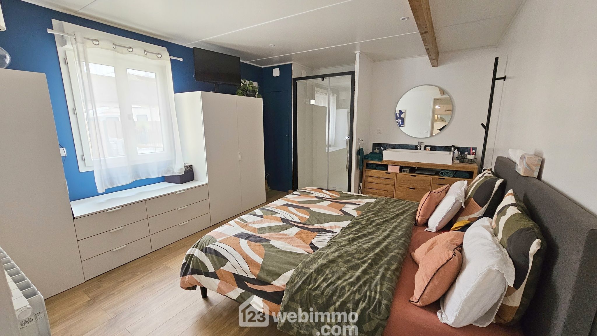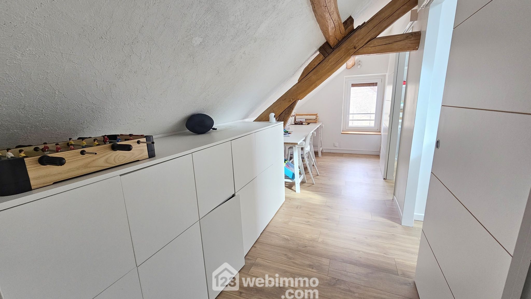 À l’étage, un vaste dégagement ouvre sur un espace idéal pour un bureau ou un coin lecture. Deux petites chambres douillettes et une grande chambre spacieuse offrent à chacun son espace personnel.