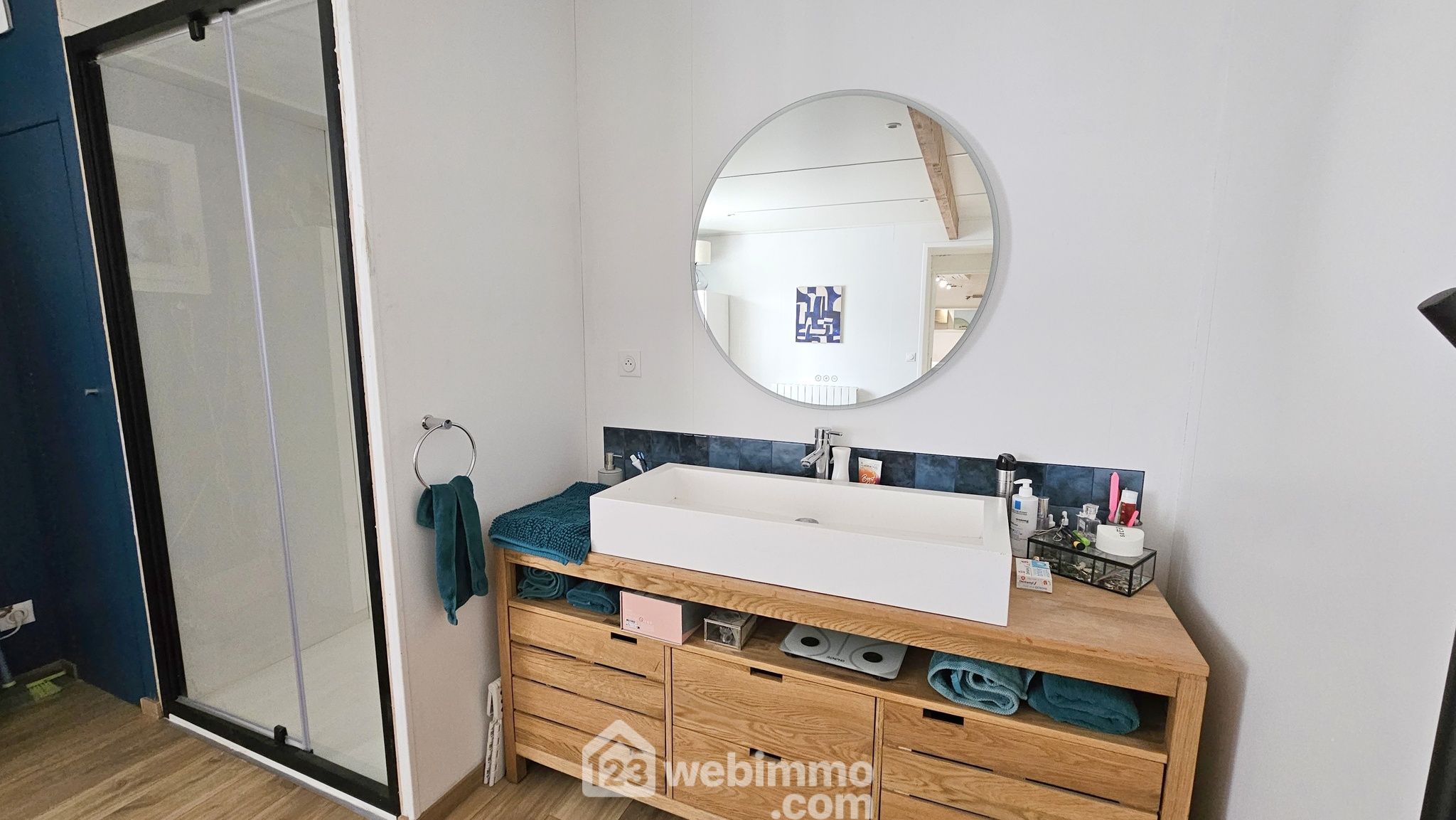 Au rez-de-chaussée, la suite parentale, avec sa salle d’eau privative, offre un cocon d’intimité. Une buanderie et des WC complètent ce niveau, alliant praticité et confort.