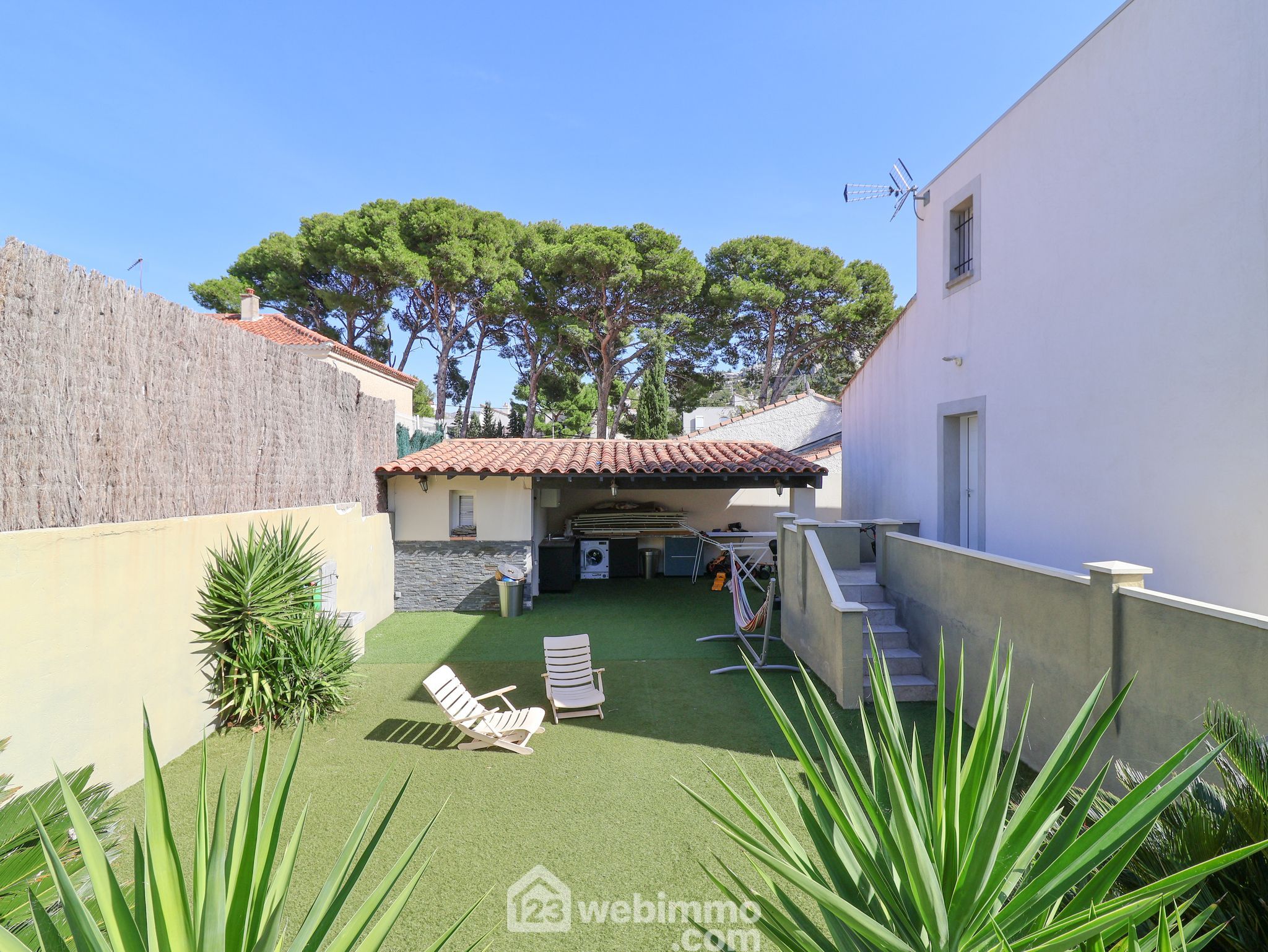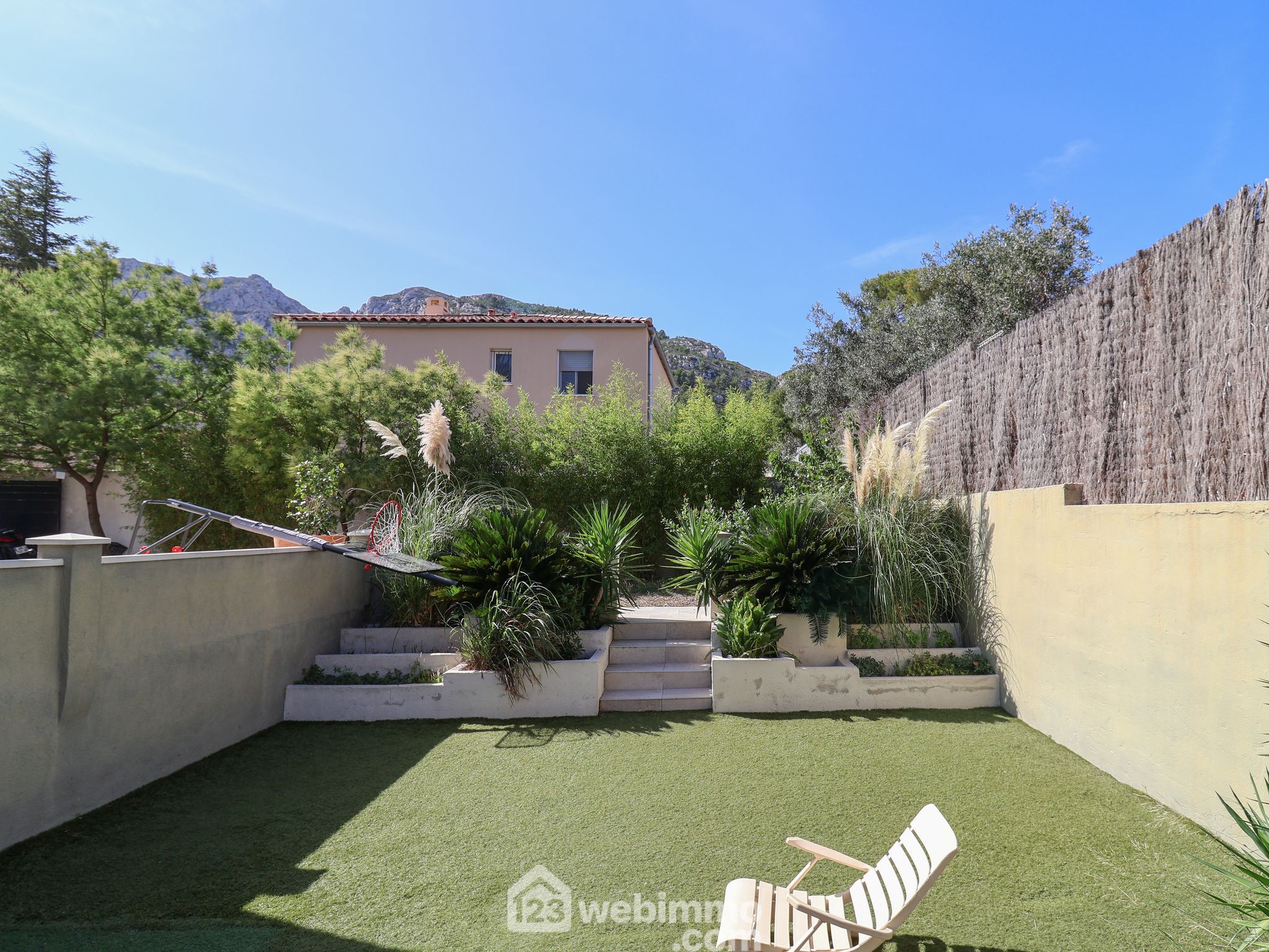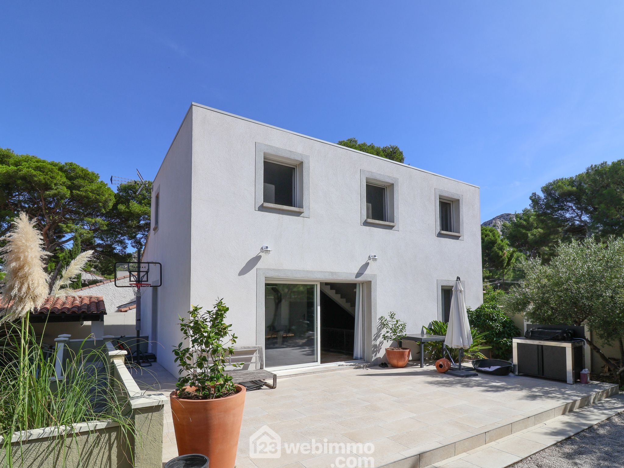 SORMIOU. EXCLUSIVITE, au fond d'une impasse au calme absolu. Jolie maison de type 5 de 112m2 de 2016 exposée au sud-ouest bâtie sur une parcelle de 447m2, aux portes du Parc National des Calanques dans un bel environnent boisé. Elle se compose au premier niveau d'un très beau séjour cuisine de 53m2 au total qui s'ouvre sur une vaste terrasse. Une chambre parentale de 12m2 avec une salle de douche et des toilettes séparés complètent le niveau. A l'étage on trouve 3 chambres avec vue sur la nature et une salle de douche avec wc. Climatisation réversible aux deux niveaux. Le jardin à l'exposition idéale est agrémenté par une cuisine d'été disposant d'un petit local.