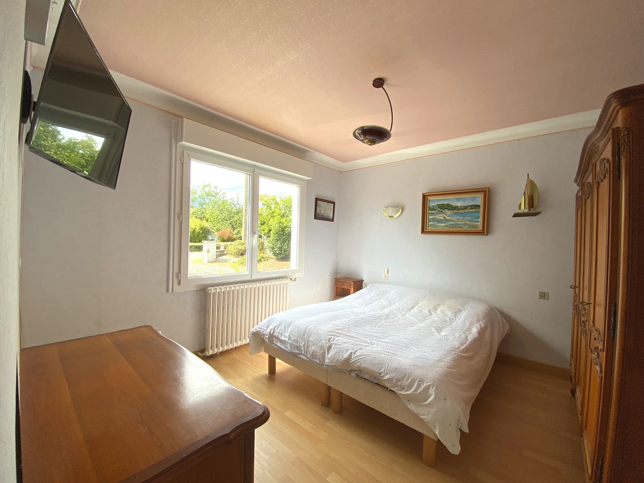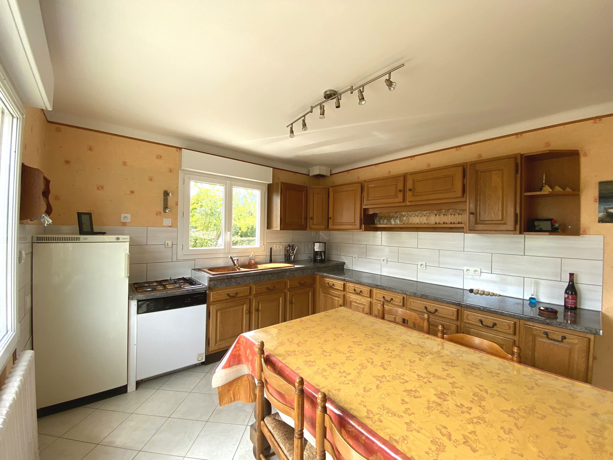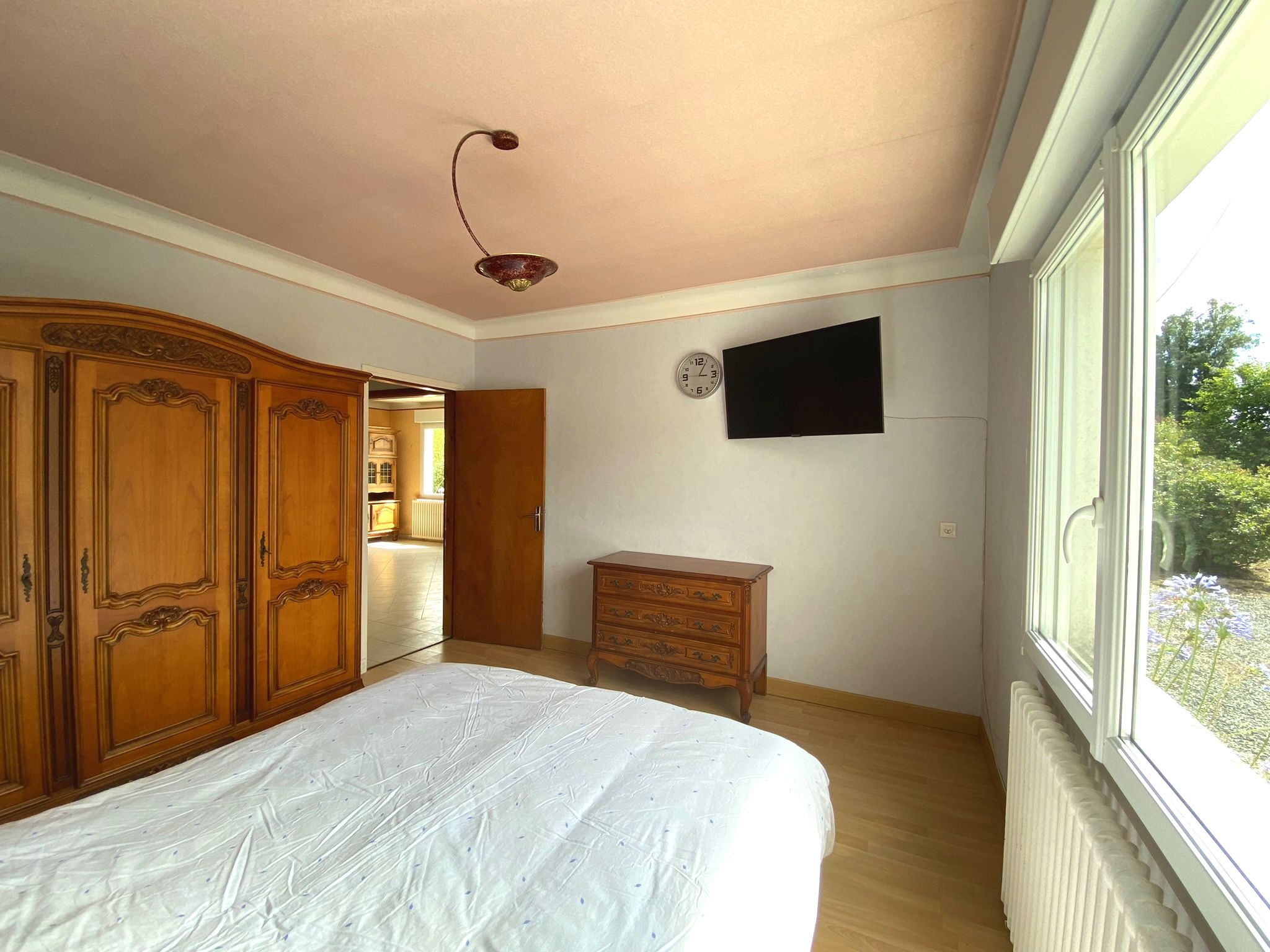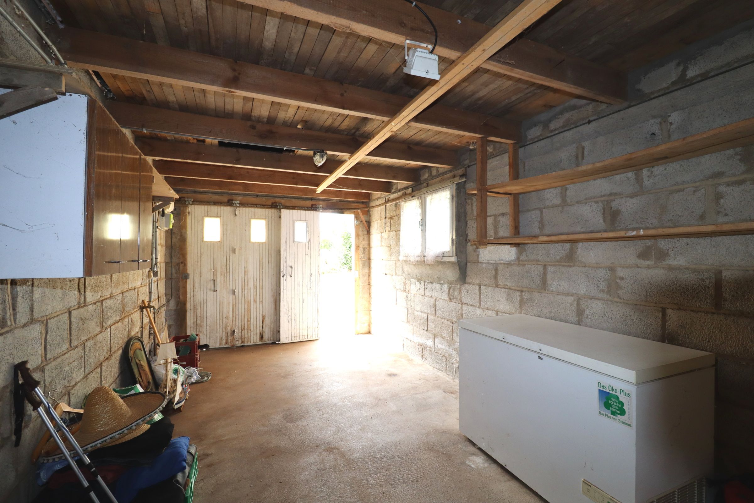 Le rez-de-chaussée de la maison d'habitation se compose d'une grande pièce de vie de 35m2 gorgée de lumière, comprenant une grande cuisine aménagée traditionnelle en chêne ouverte sur le salon, 1 chambre lumineuse de 12m2, une salle de bain de 5m2 et un WC séparé. A l'arrière de la maison, accessible par le rez-de-chaussée, la porte de garage ou encore par une porte de service à l'Est, un garage de 17m2 et un espace chaufferie de 10m2.