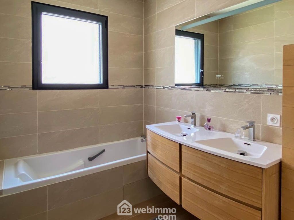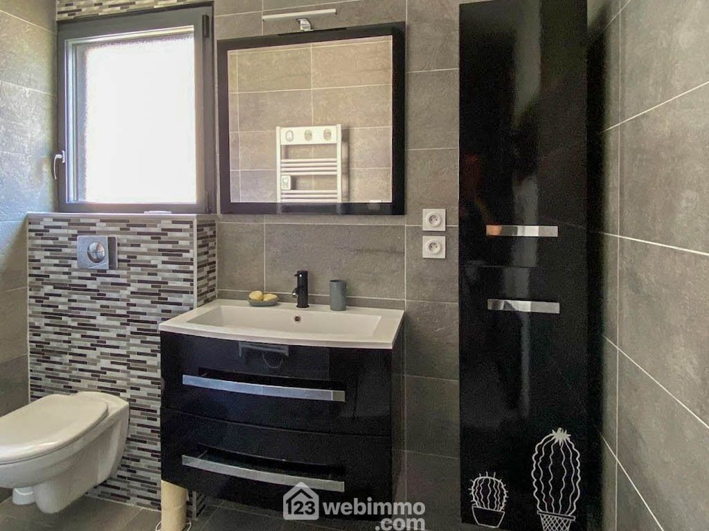 49280 St Léger sous Cholet, maison de plain pied de 113m², RT 2012, 3 chambres. Construite en 2018 sur une parcelle de 542m² proche des écoles. Cette construction récente se présente avec un hall d'entrée de 4.95m², ouvert sur un ensemble salon/séjour/cuisine de 42.17m². La cuisine ouverte est équipée. La buanderie ou arrière-cuisine de 9.58m² complète la partie vie. Le dégagement de 6.82m² côté nuit distribue une suite parentale de 18.48m² (chambre, dressing et salle d'eau avec WC), 2 chambres avec placards de 12.83m² et 10.74m², une salle de bain avec placard de 5m² et un WC séparé avec lavabo. Un garage de 19.61m² complète la maison. A l'extérieur, une terrasse carrelée termine la parcelle entièrement close (mur et claustras). Les menuiseries sont en aluminium. les volets sont électriques avec centralisation. Le Système de chauffage est une PAC par le sol en aérothermie. Cette maison est sous garantie décennale. L'assainissement est collectif et la taxe foncière est de 934€ pour 2022. Les informations sur les risques auxquels ce bien est exposé sont disponibles sur le site : georisques.gouv.fr