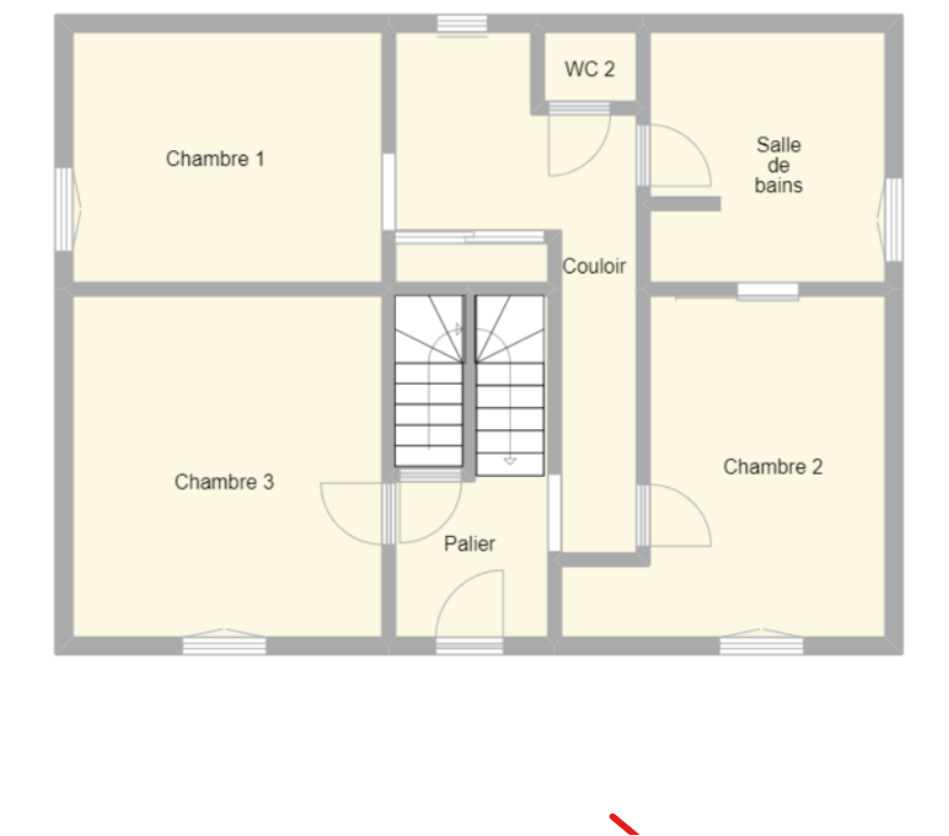 - Au 2ème étage : Grenier aménageable d'une superficie de 30 m² environ permettant l'aménagement de deux pièces supplémentaires.