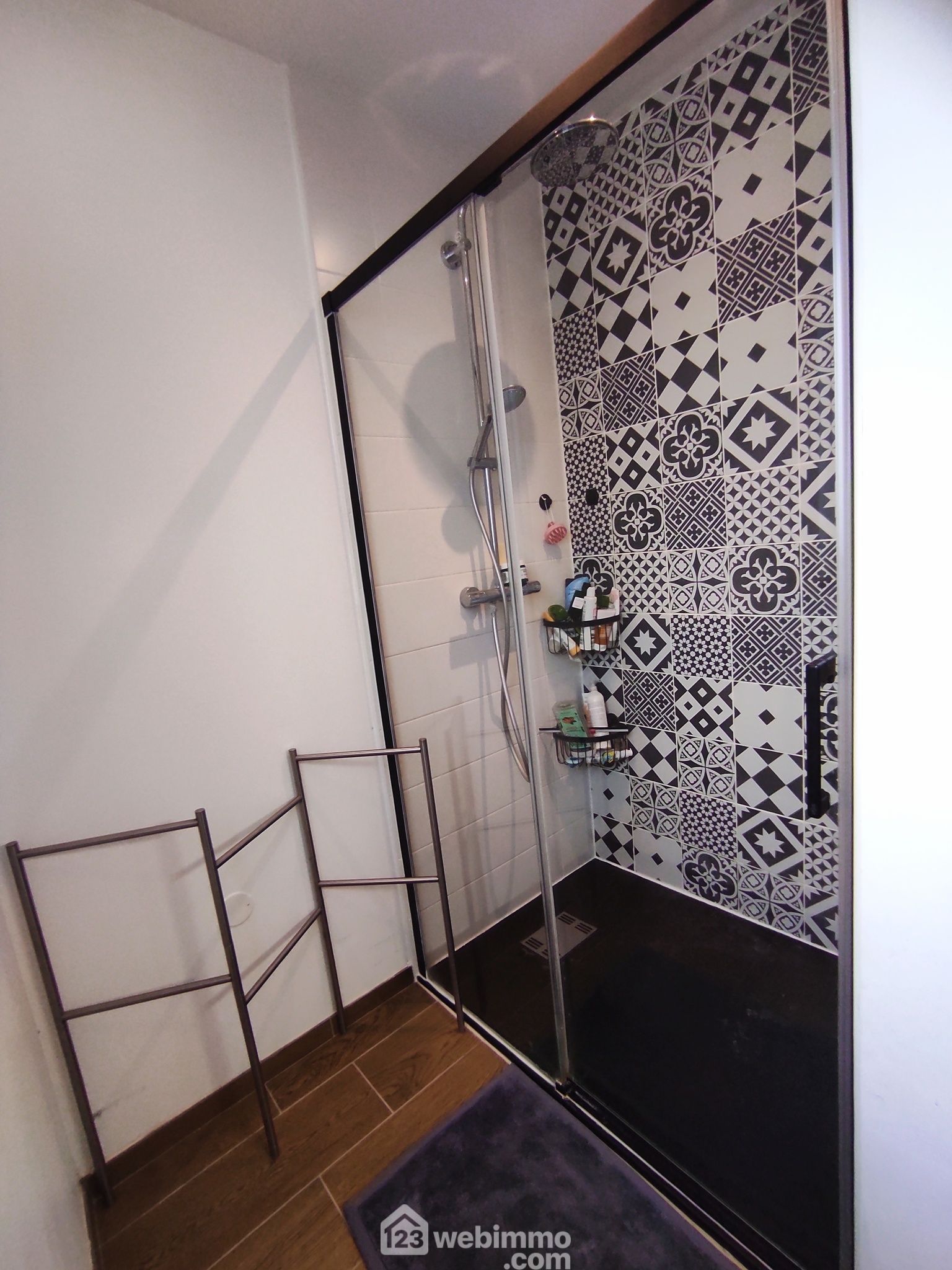 Entrée desservant salon / salle à manger, cuisine aménagée et équipée donnant accès à un espace arrière cuisine équipée de grands placards de rangements. Salle d'eau et WC indépendant.