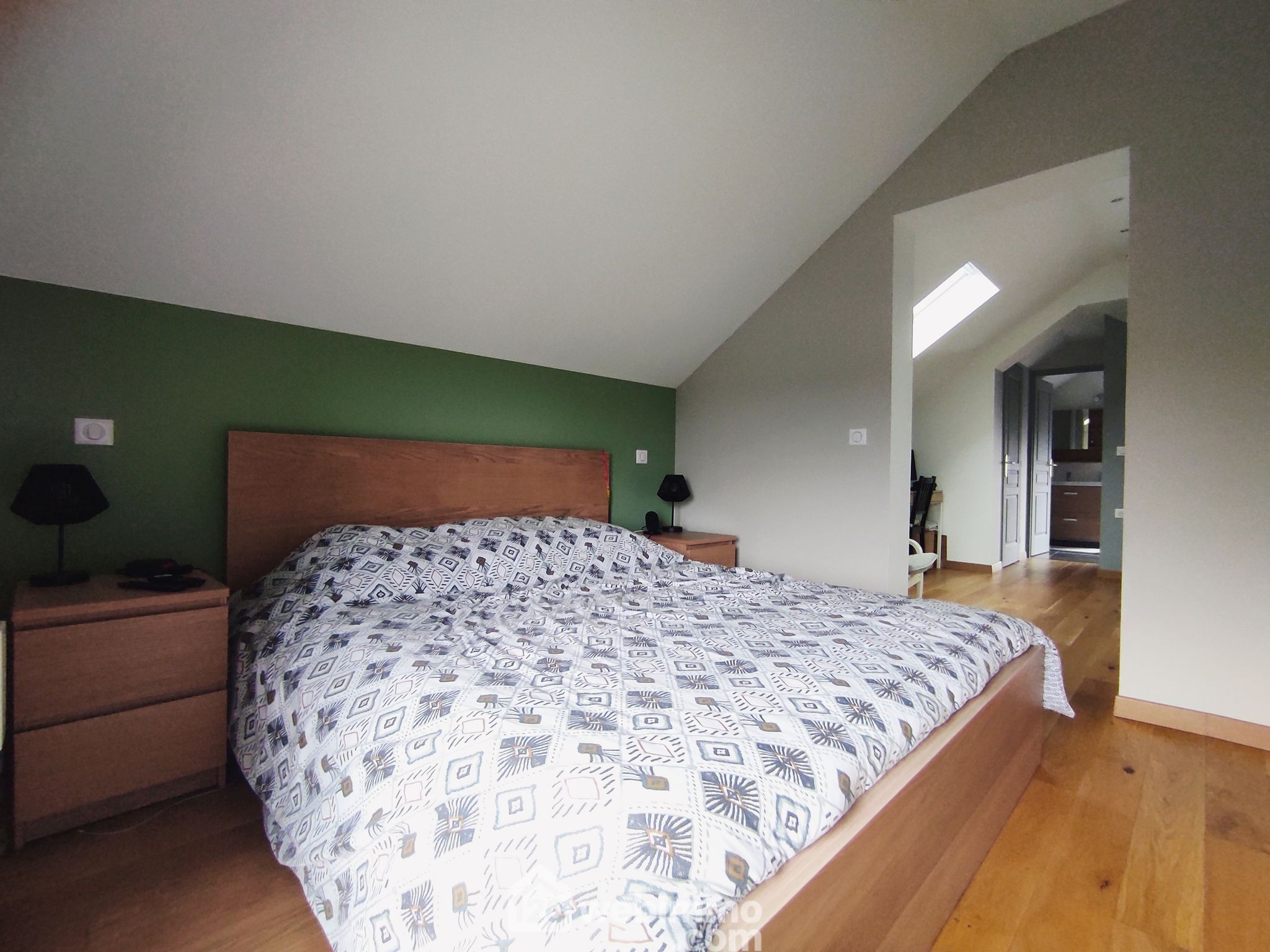 - Au 1er étage : Palier distribuant trois chambres dont une suite parentale avec espace nuit, bureau / dressing, salle de bains avec baignoire et douche, WC.