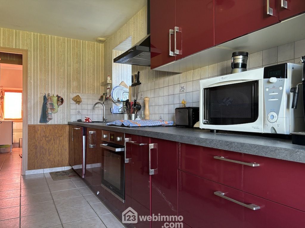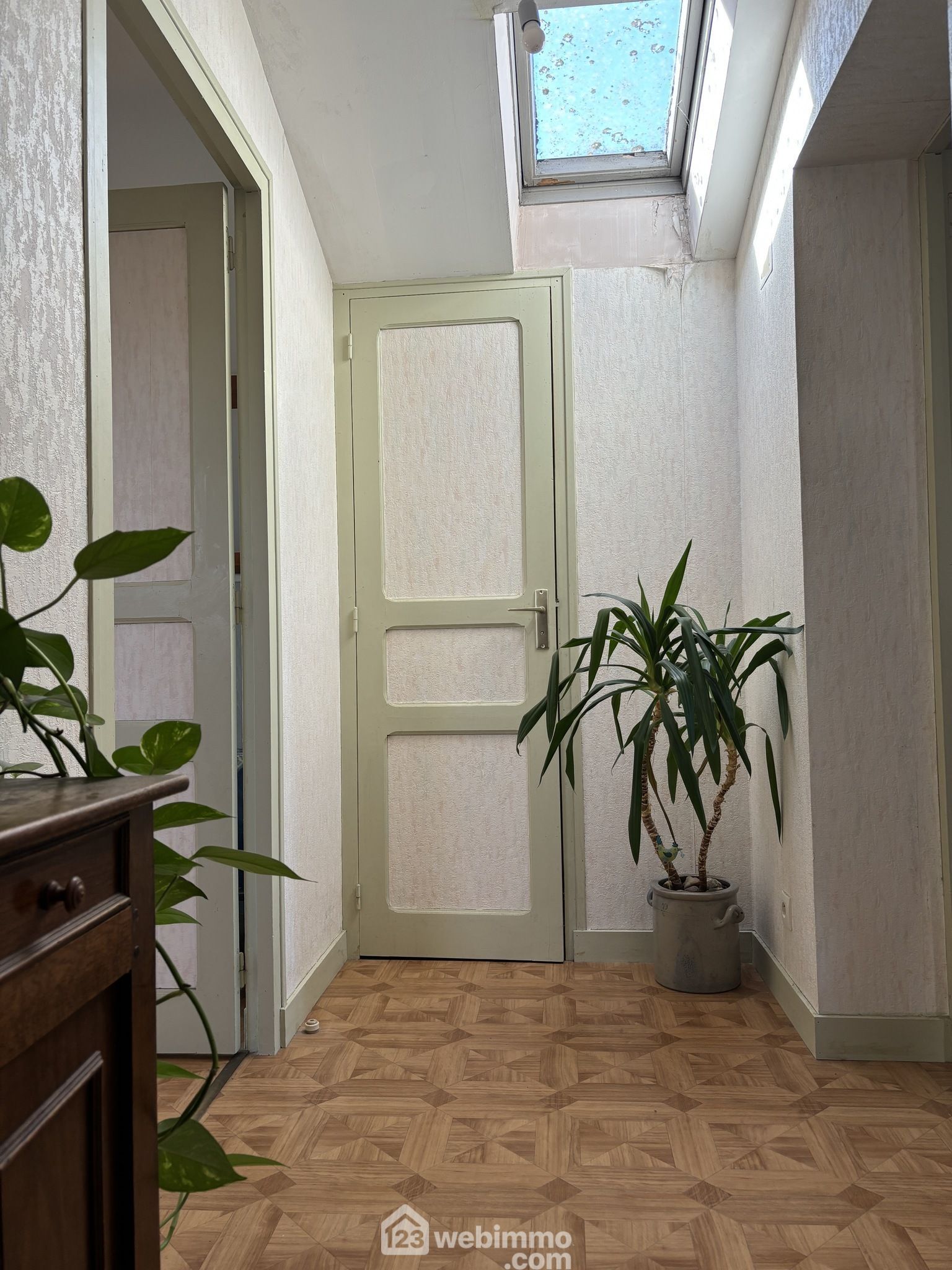 Maison 115 m2 habitables, 4 pièces(2 ou 3 chambres), sur terrain de 2311 avec double garage, appentis et dépendances.