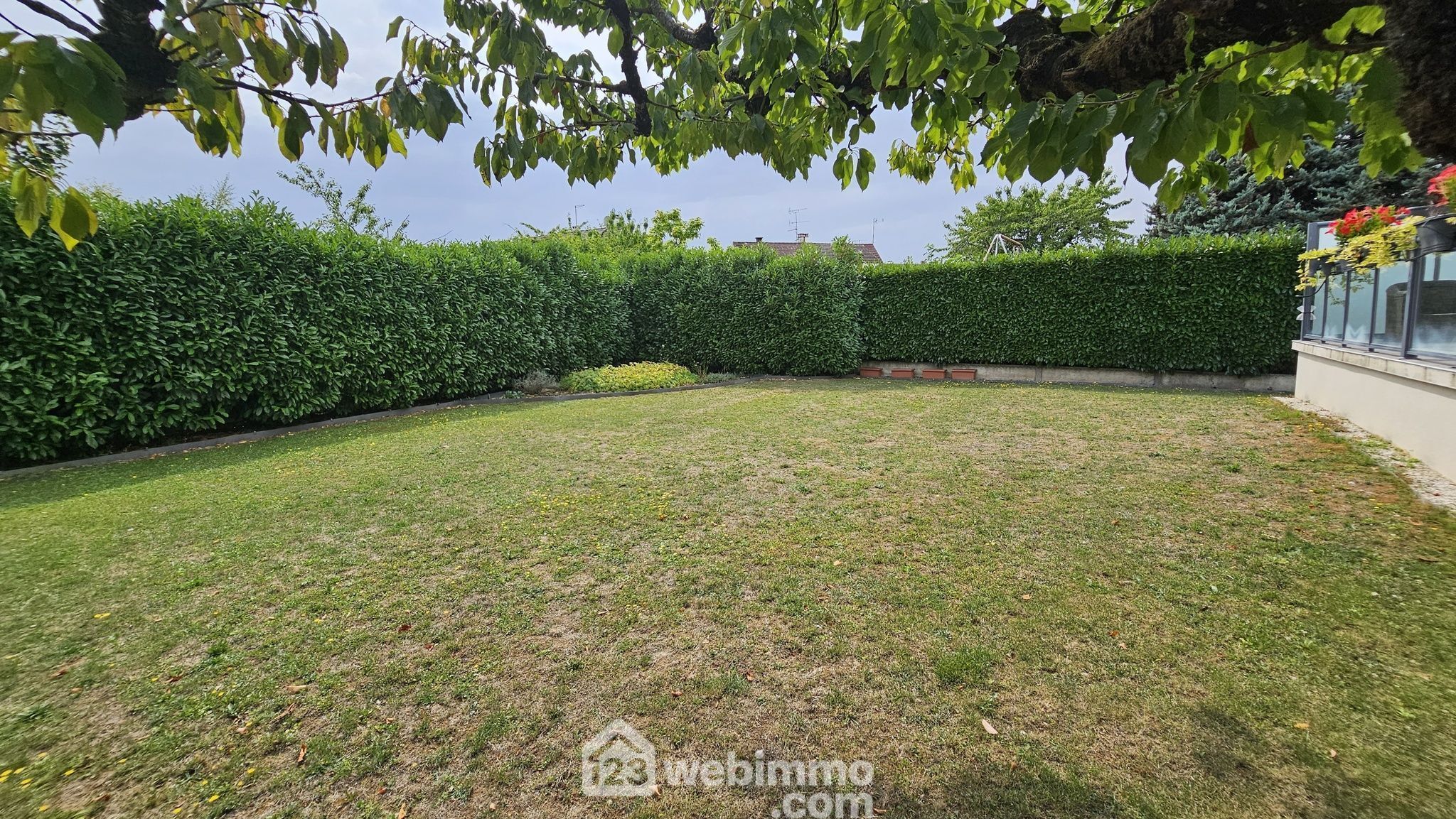 À l’extérieur, vous profiterez d’un terrain clos et arboré de 599 m², offrant un bel espace pour vos moments de détente, vos repas en plein air ou le jeu des enfants en toute sécurité.