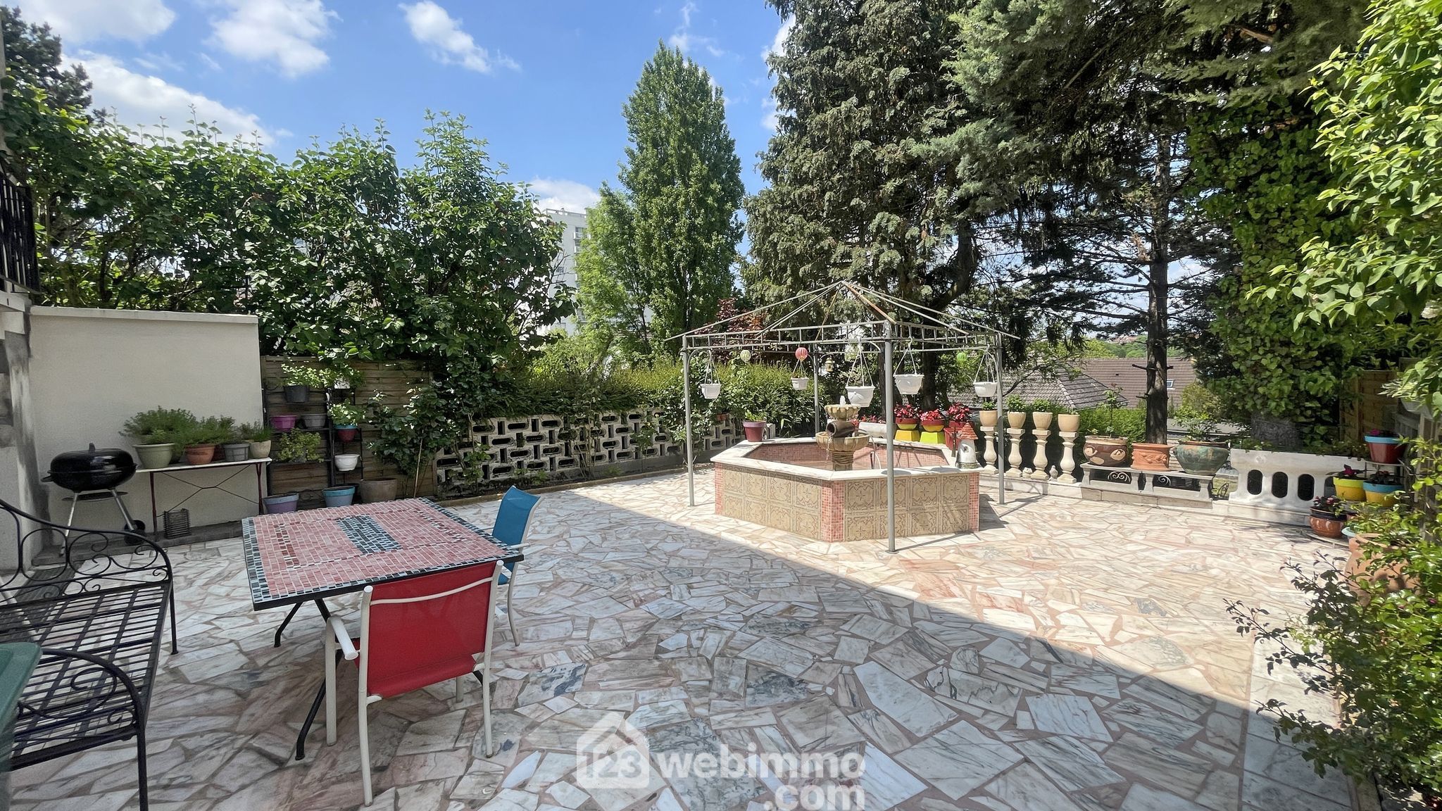 Proche du centre-ville et à dix minutes en bus de la gare RER, pavillon indépendant offrant 175m2 de surface utile sur vaste terrain.