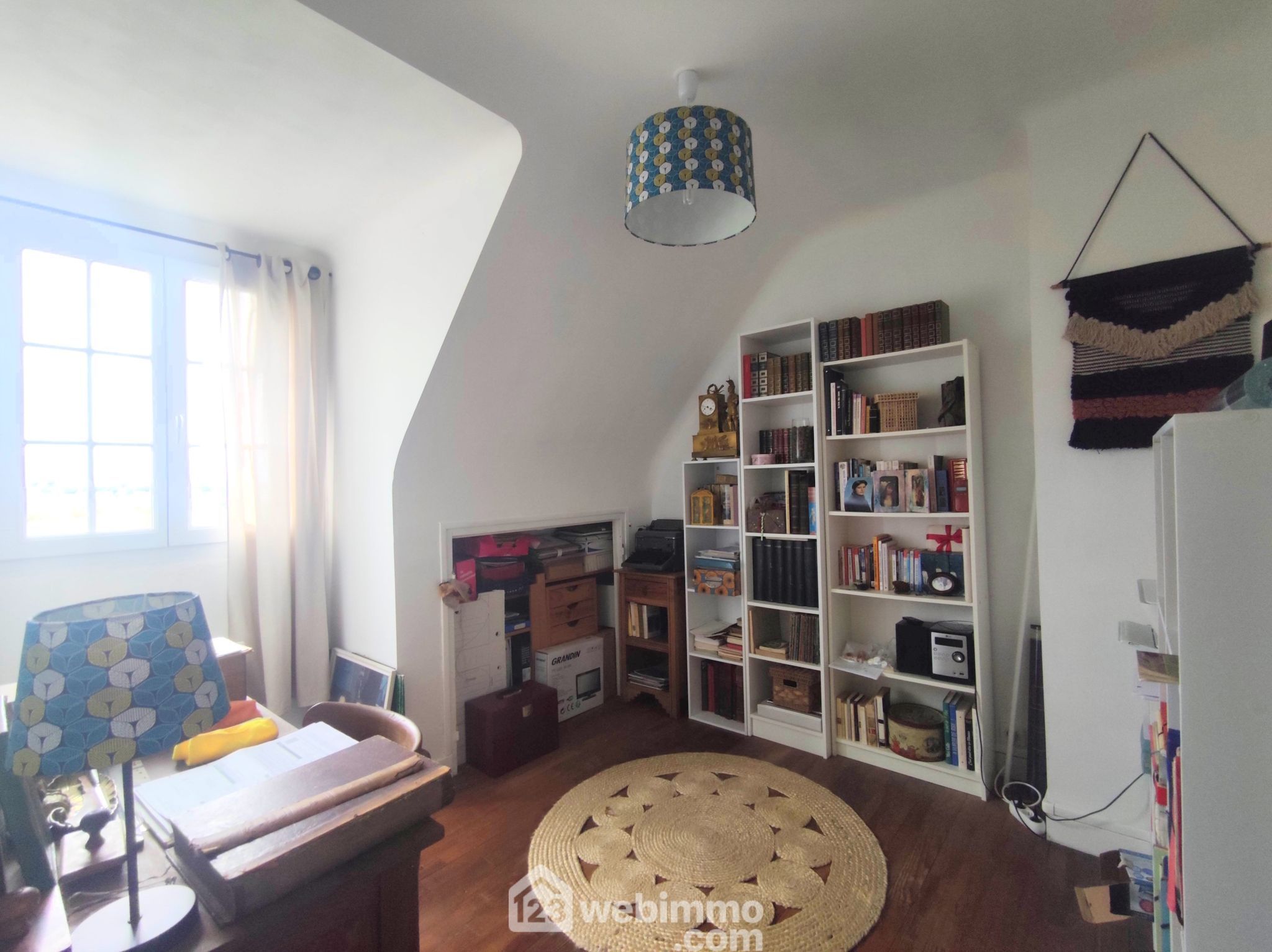 L'étage comprend un palier de 4m2 desservant 3 belles chambres de 10 à 12m2 habitables avec placards intégrés, un bureau de 7m2 et un cabinet de toilette de 4m2.