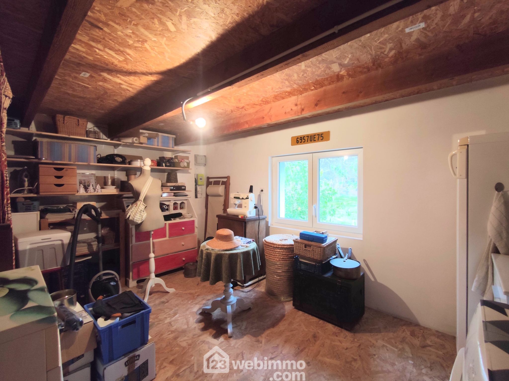 Accessible par la maison comme par le jardin, la maison possède un grand garage de 30m2 divisé en deux. Un espace garage/bricolage de 15m2 d'un côté et atelier buanderie de 15m2 de l'autre. Au-dessus, un grand grenier de 20m2 habitables.
