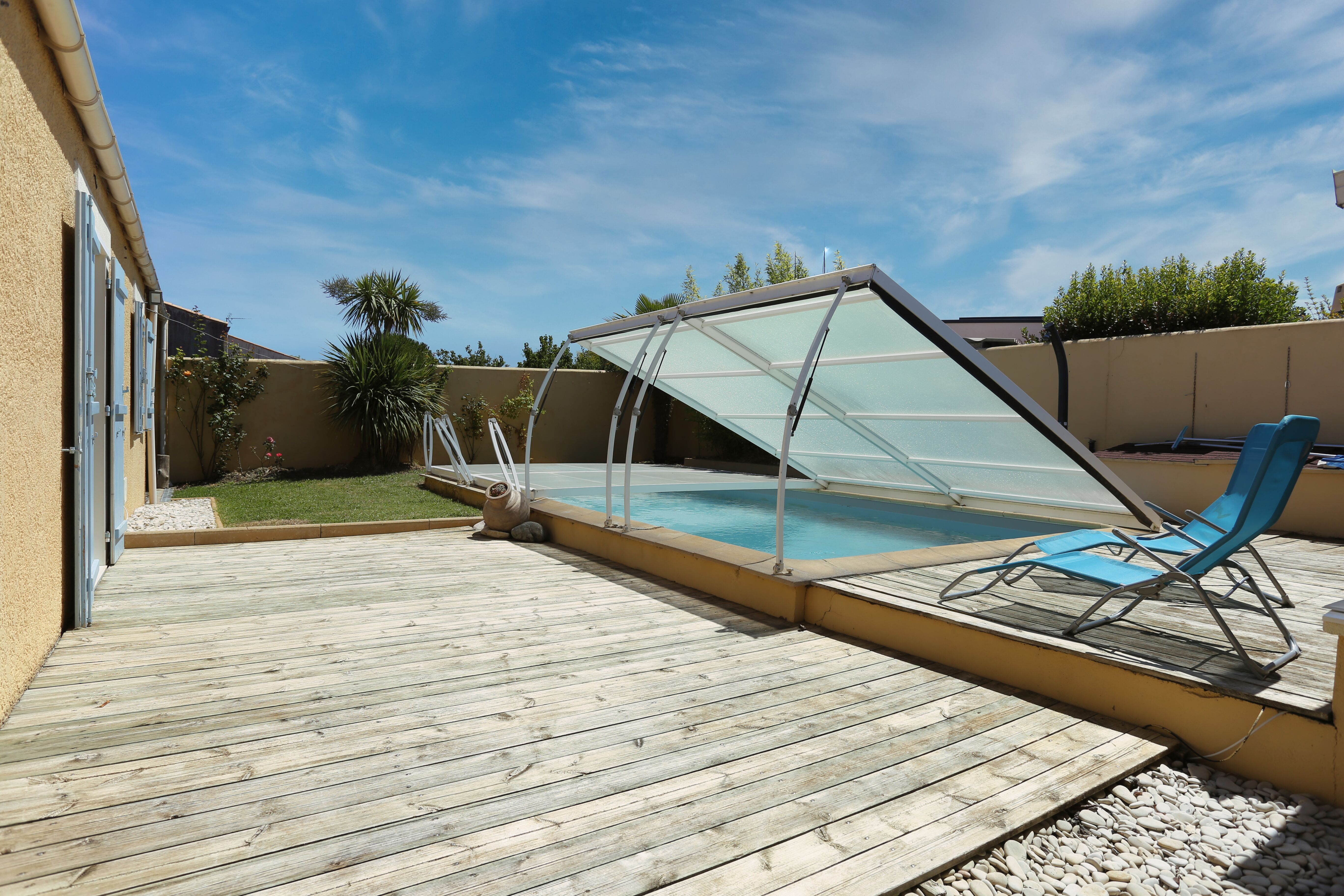 Nieul sur Mer. A 10 minutes de La Rochelle. Maison de 116 m² avec piscine. Proche de toutes les commodités. De plain-pied, elle se compose d'un espace de vie de 32 m² comprenant salon/sam et cuisine ouverte. 4 chambres dont une avec salle de bain et une avec salle d'eau. Grand cellier et garage. Terrasse bois sur piscine exposée sud. Prévoir rafraîchissement. A découvrir.