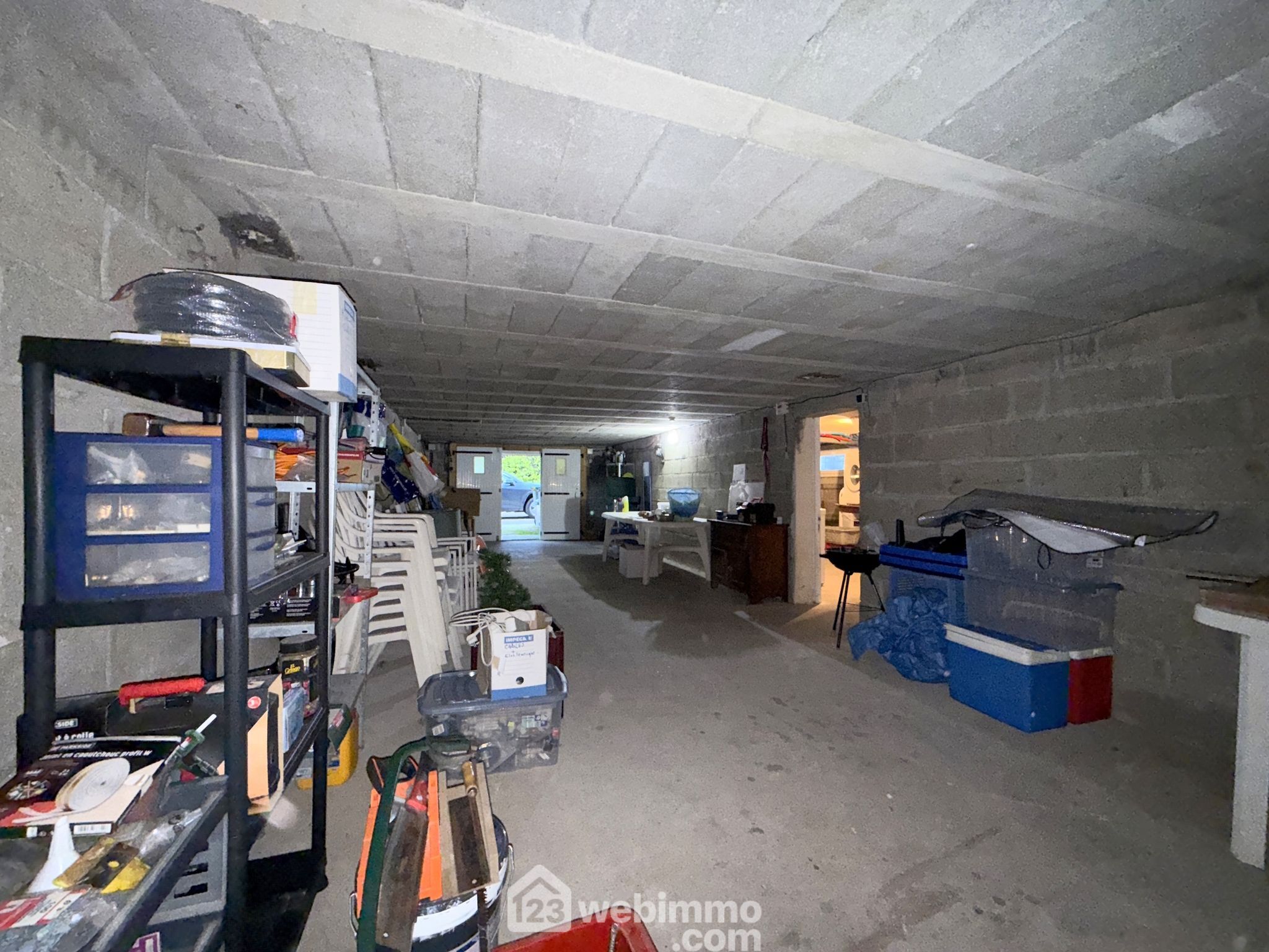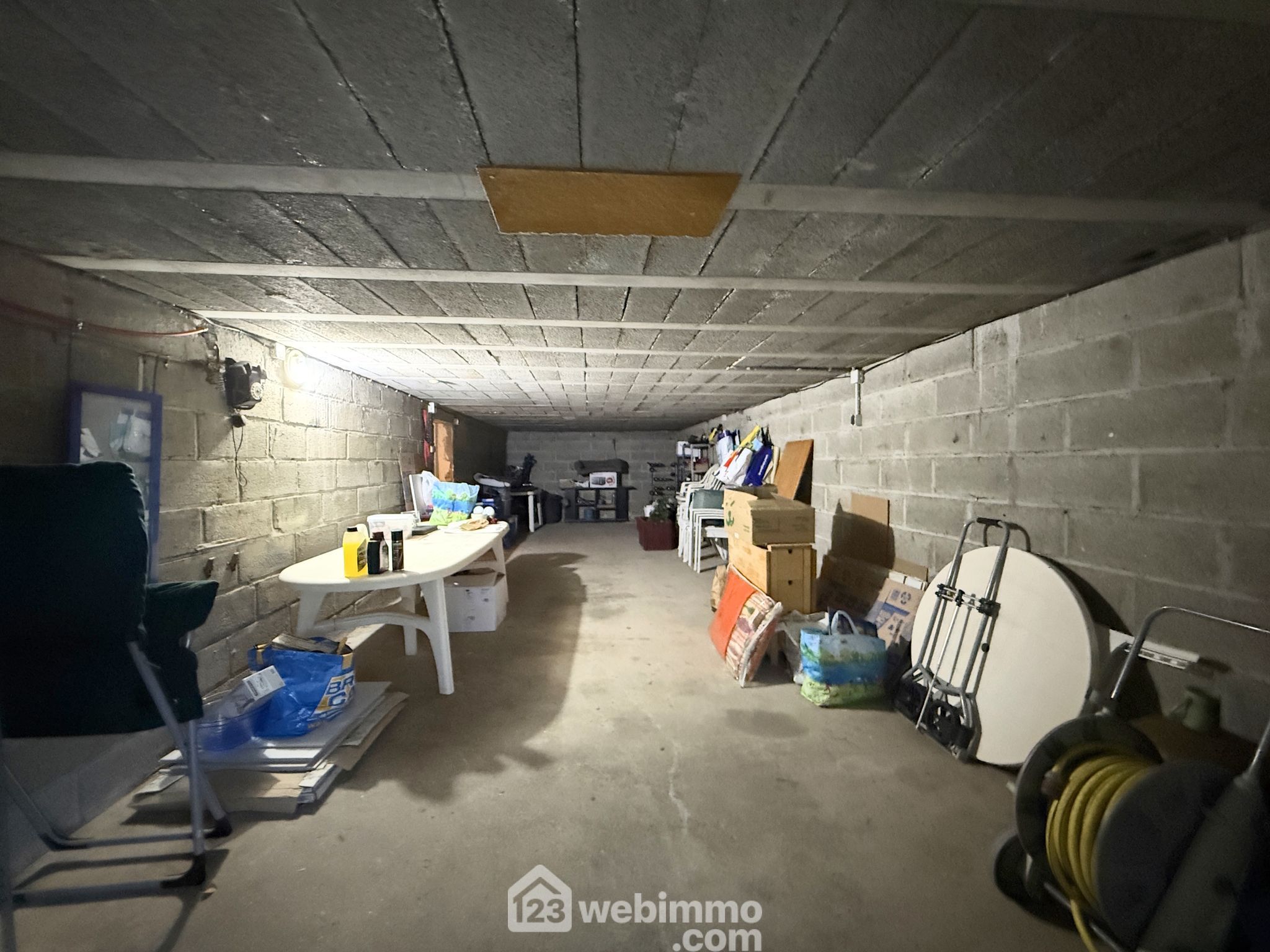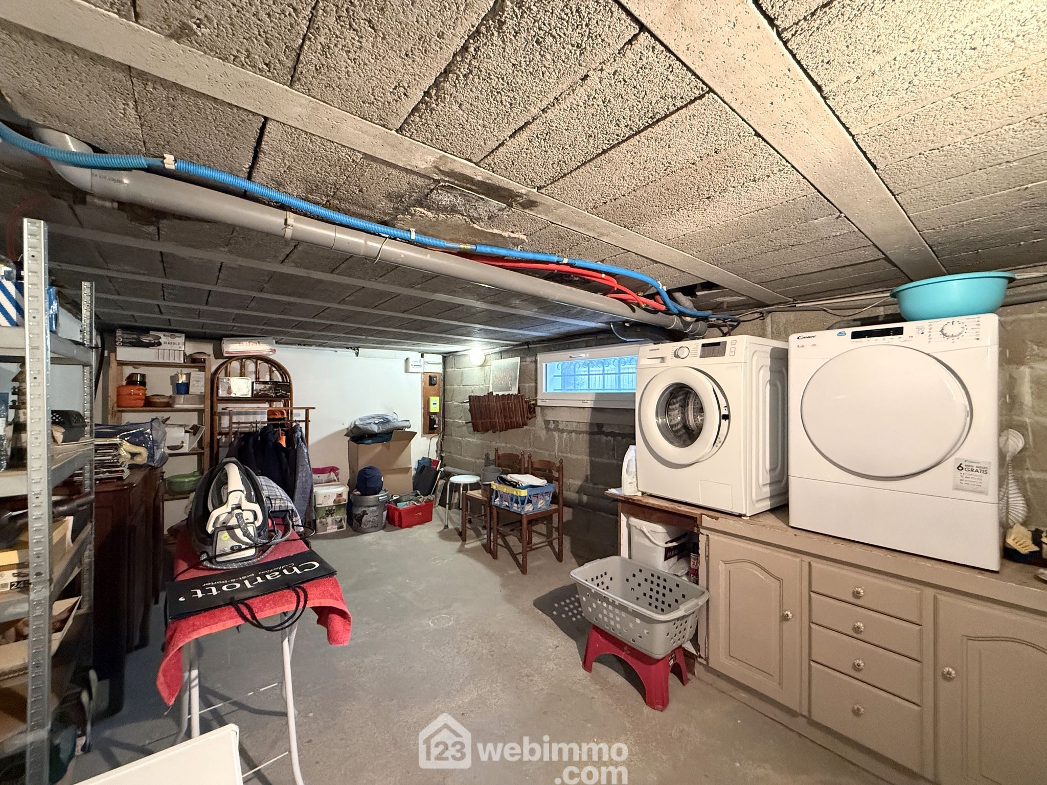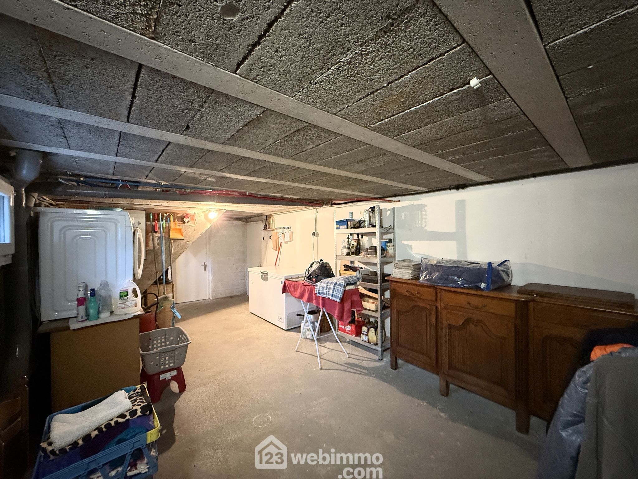 La maison renferme également un sous-sol total de 75m2, sain avec fenêtres PVC double vitrage. Ce dernier est divisé en un espace garage pouvant accueillir deux voitures en enfilade, un espace buanderie et un ancien espace chaufferie.