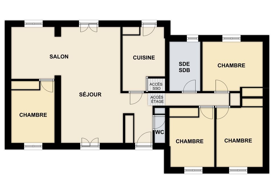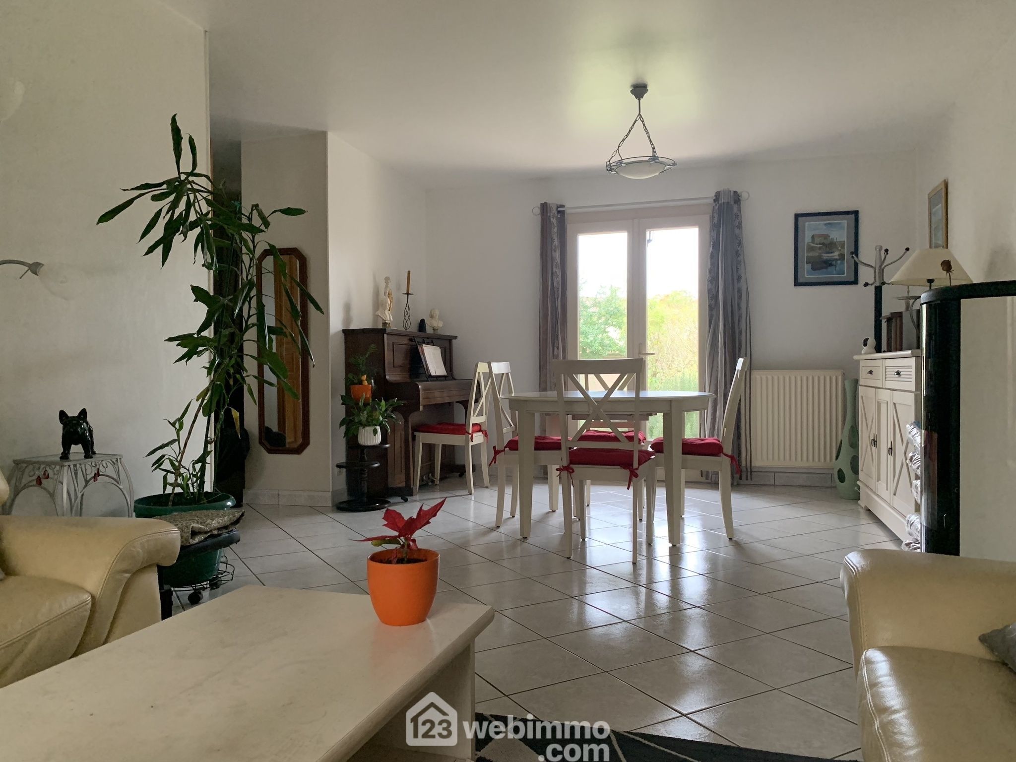 Maison des années 90 prête à habiter, 116 m2 habitables, 5 pièces, 4 chambres, sur terrain clos, arboré et sans vis-à-vis de 676 m2.
