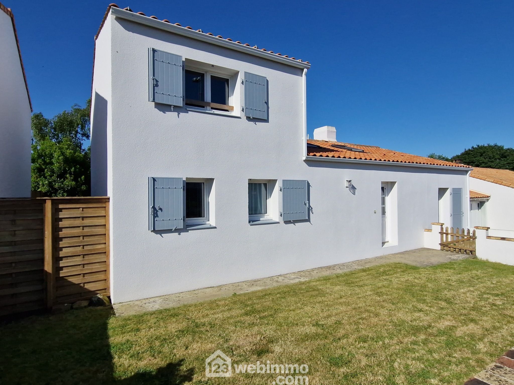 A l'extérieur, terrasse en partie couverte, abri de jardin en dur, jardin arboré sans vis-à-vis et bien entretenu, tout comme la maison (façade comme neuve, volets alu récents...).