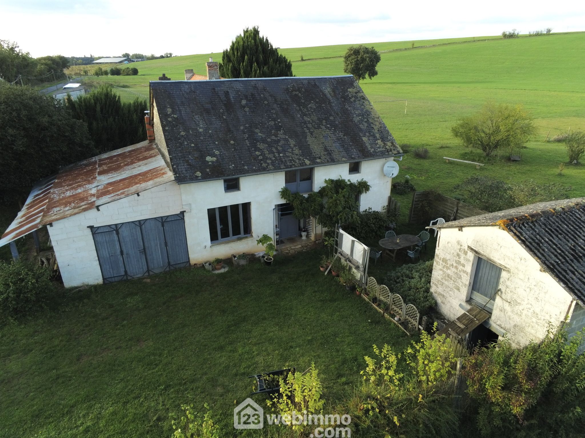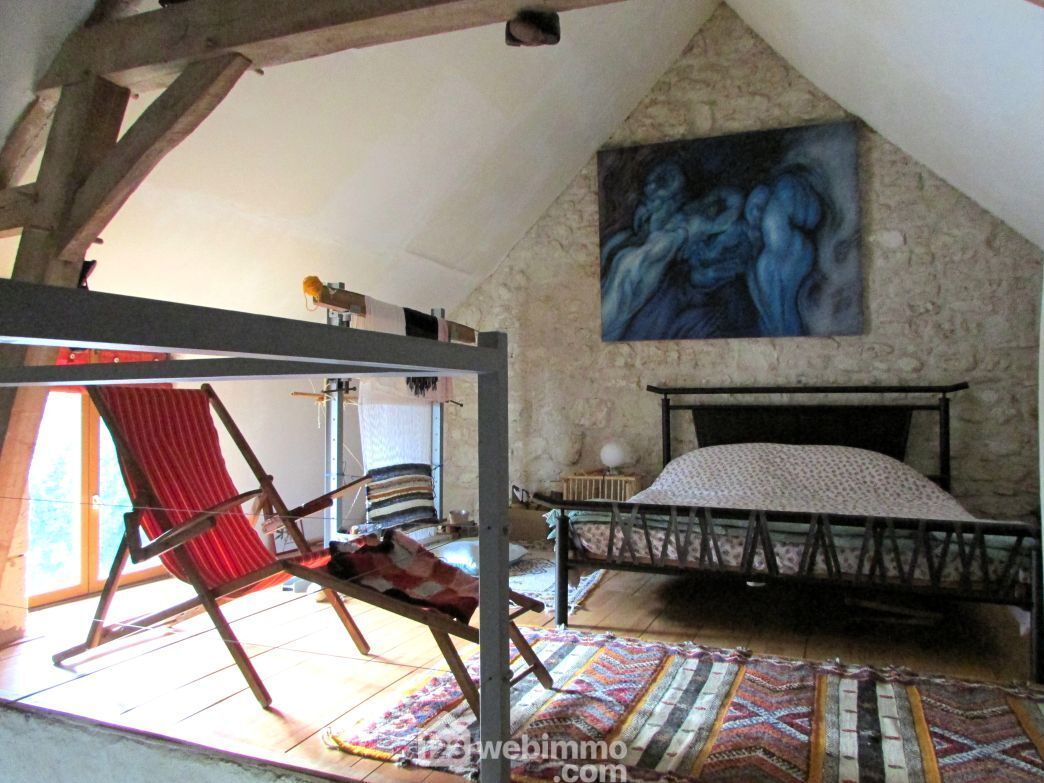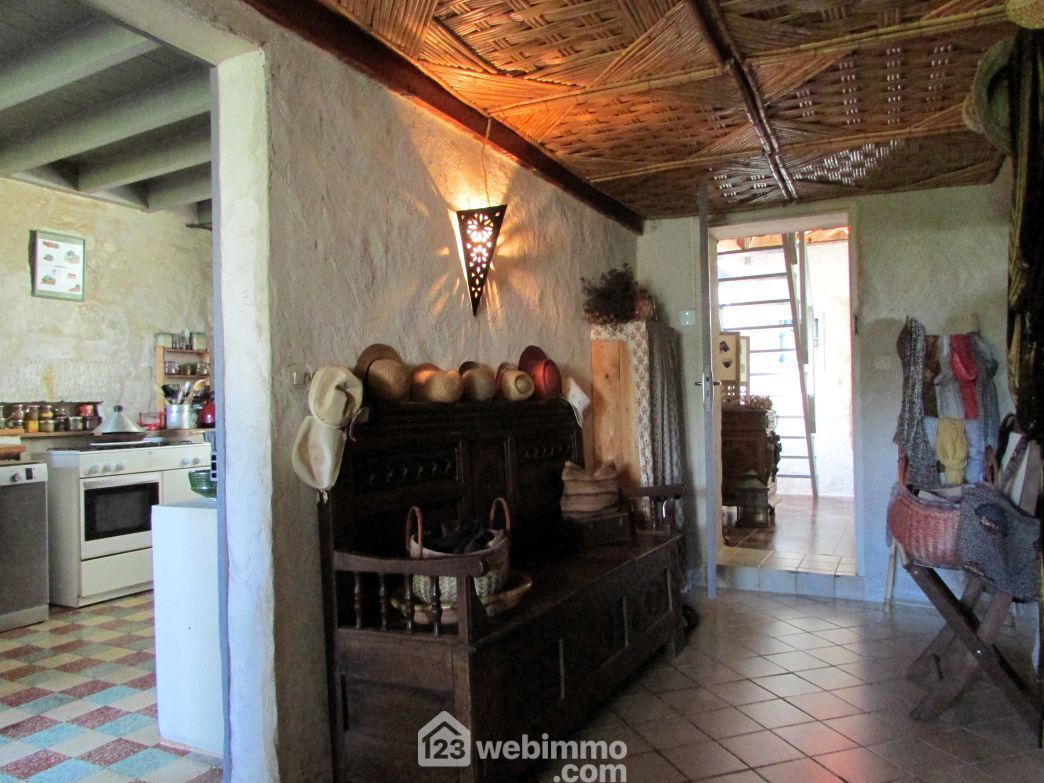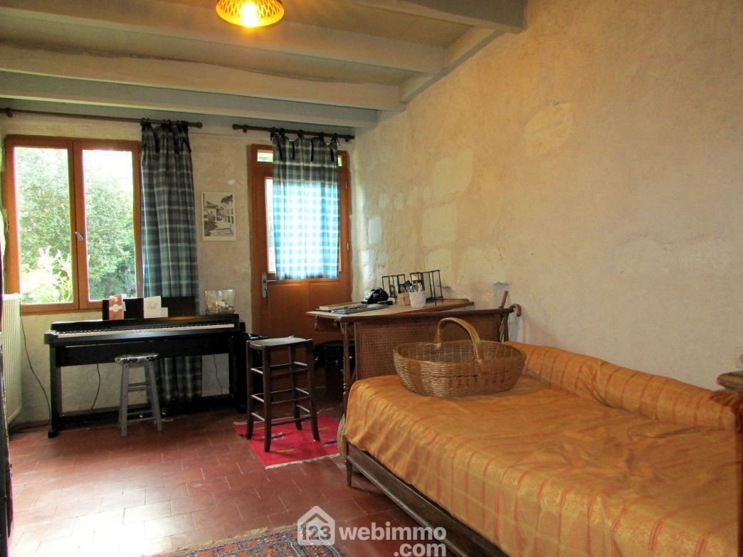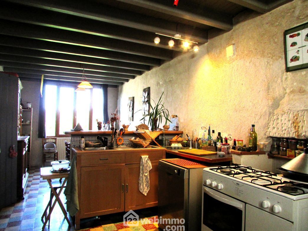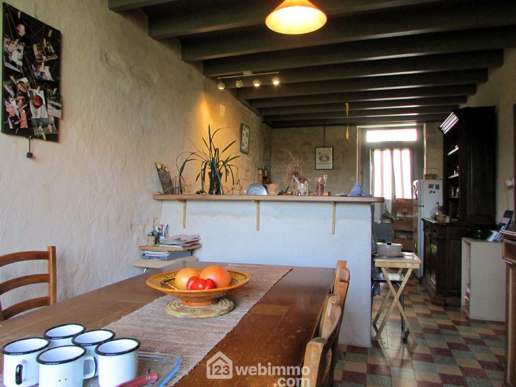 86230 Sérigny. A 20 min de Châtellerault et à proximité de l'axe Richelieu (10 min) / Poitiers (40 min). Sur un grand terrain, maison en pierre, mitoyenne par un pignon, en partie rénovée, avec des murs isolés en chaux et chanvre. Au rez-de-chaussée : entrée, cuisine, séjour, 2 chambres, salle d'eau et WC séparés. A l'étage : une troisième chambre en mezzanine et mansardée avec accès au grenier aménageable de plus de 70 m2. A l'extérieur : un garage avec chaufferie (chaudière à granulés) et une dépendance de 18 m2 avec cave et atelier au-dessus.