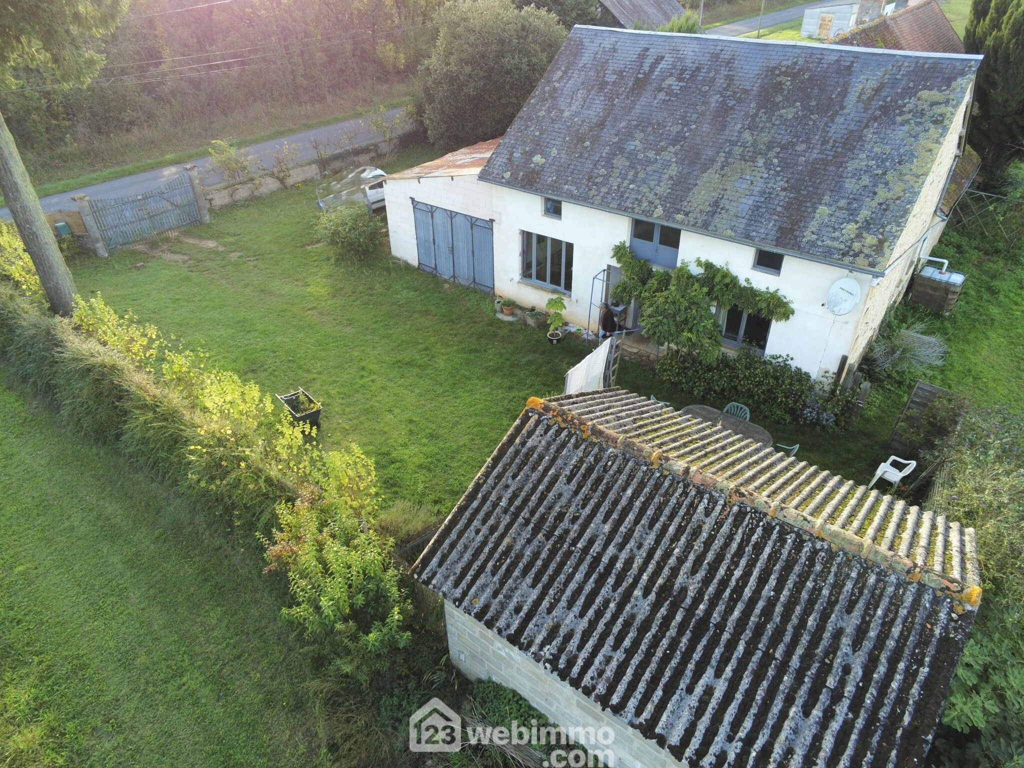 Maison avec vie de plain-pied, 117 m2 habitables, 5 pièces, 3 chambres, garage et petite dépendance, sur terrain de 4077 m2.